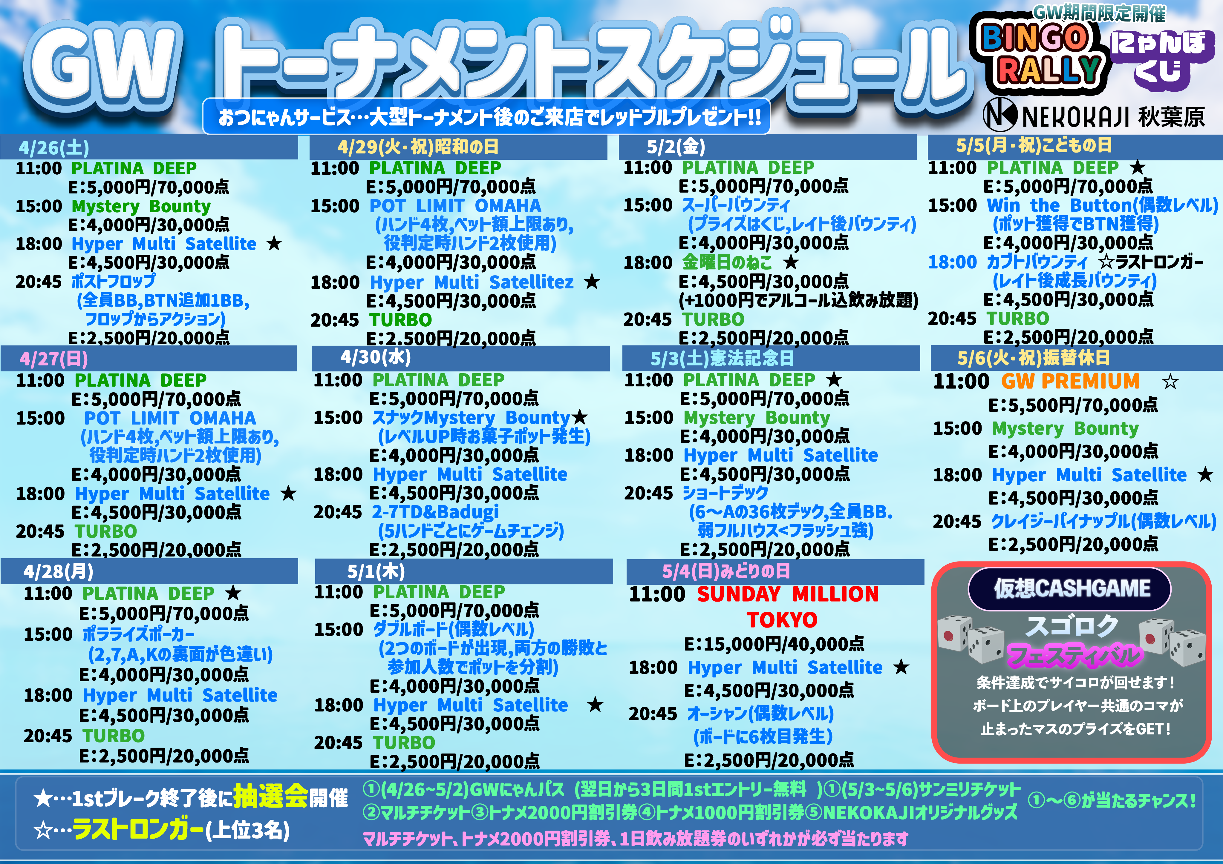 ♡にゃんパス・・・獲得翌日より1週間トーナメント参加費・1回目のリエントリーに2,000円割引としてご利用いただけます