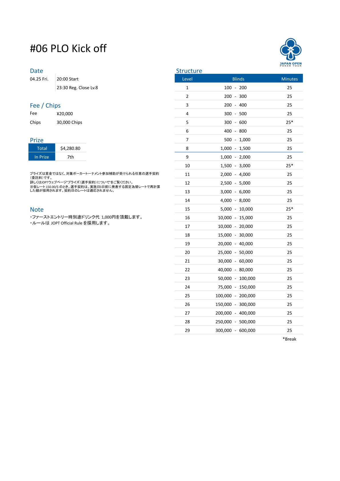 | 店舗名 | JAPAN OPEN POKER TOUR |