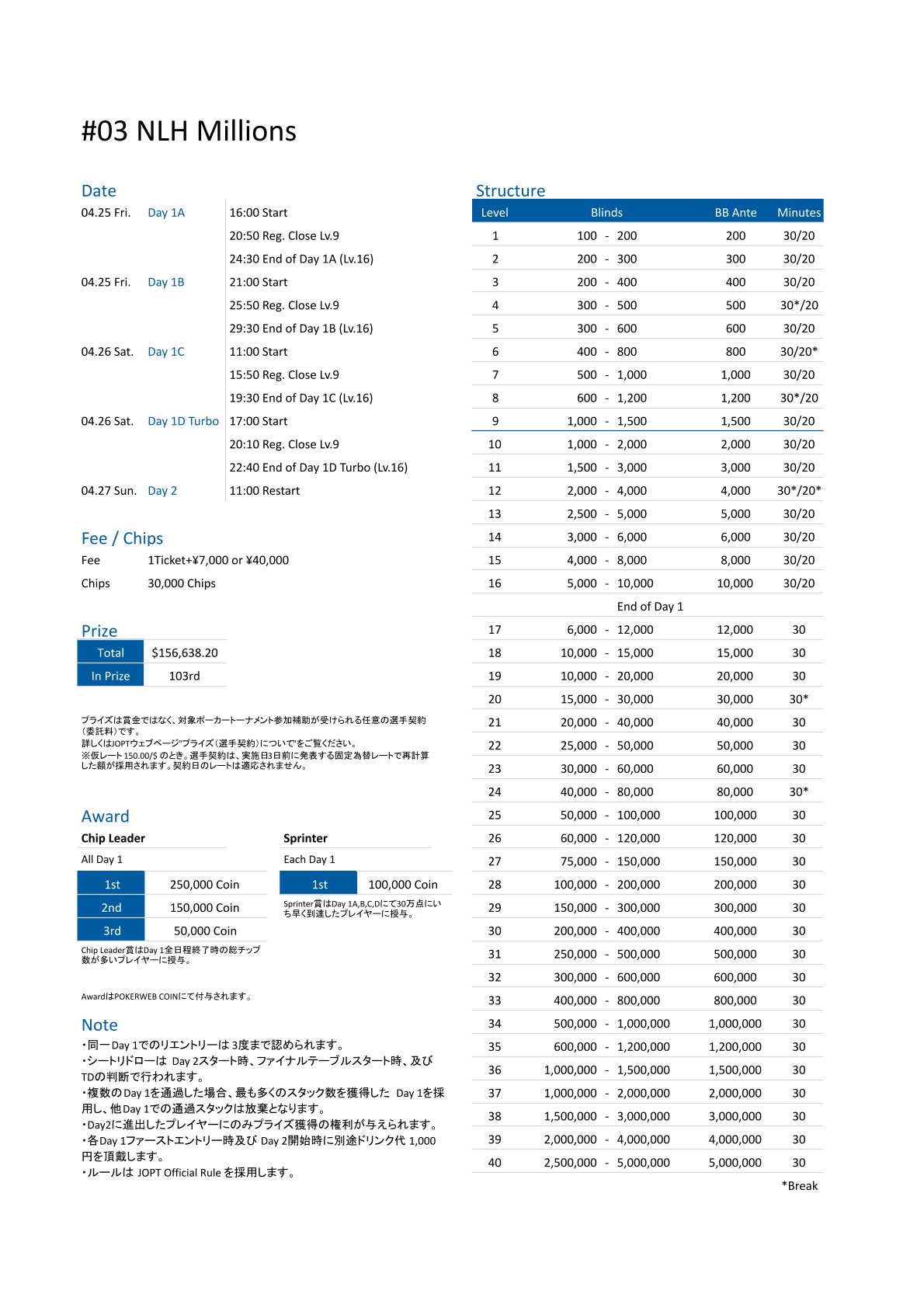 そしてChip Leader賞、Sprinter賞として最大120万コイン獲得のチャンス!