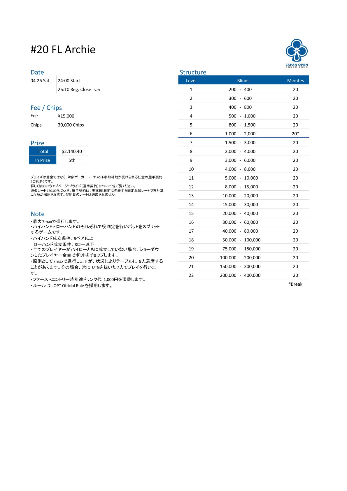 | 店舗名 | JAPAN OPEN POKER TOUR |