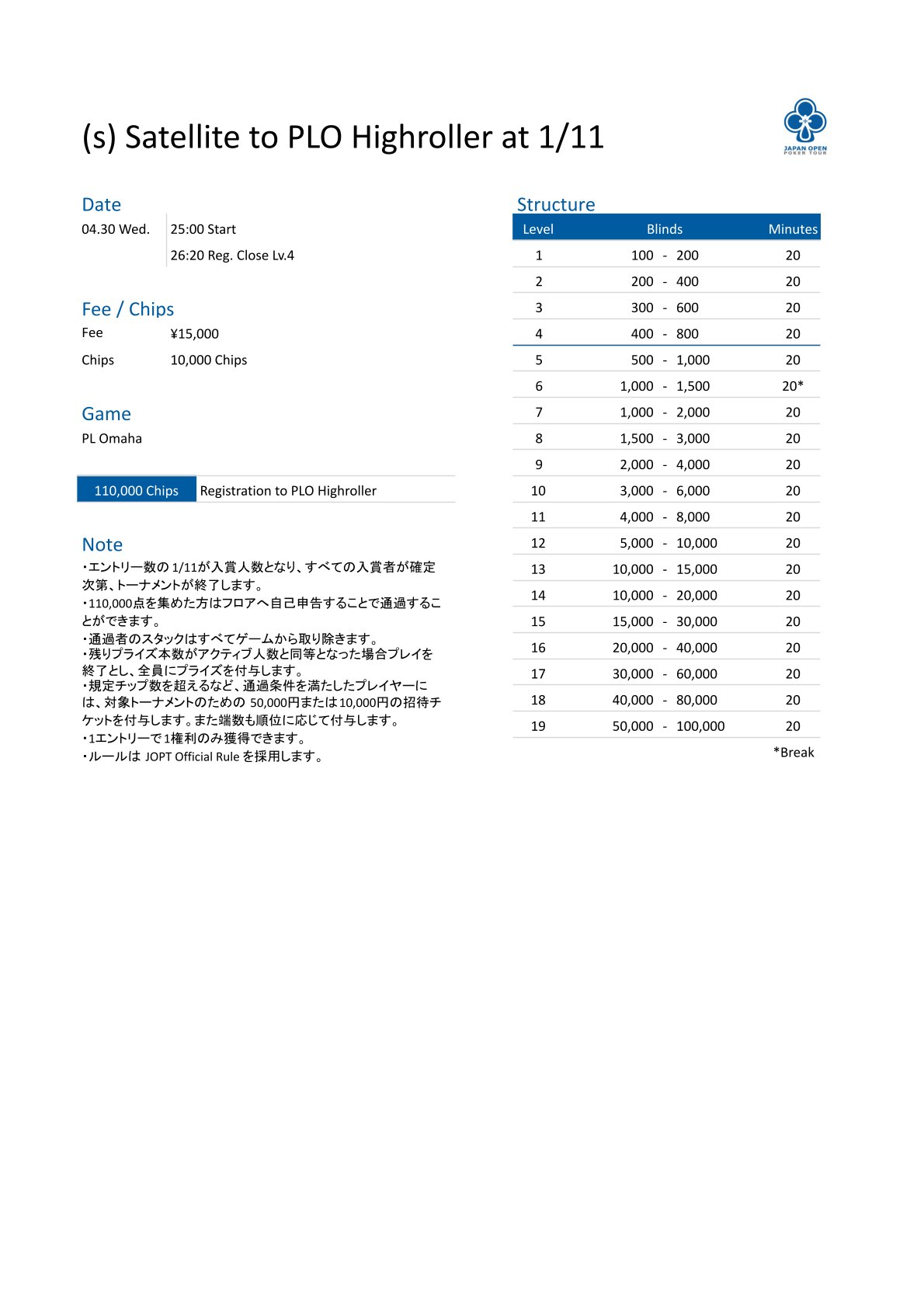 | 店舗名 | JAPAN OPEN POKER TOUR |