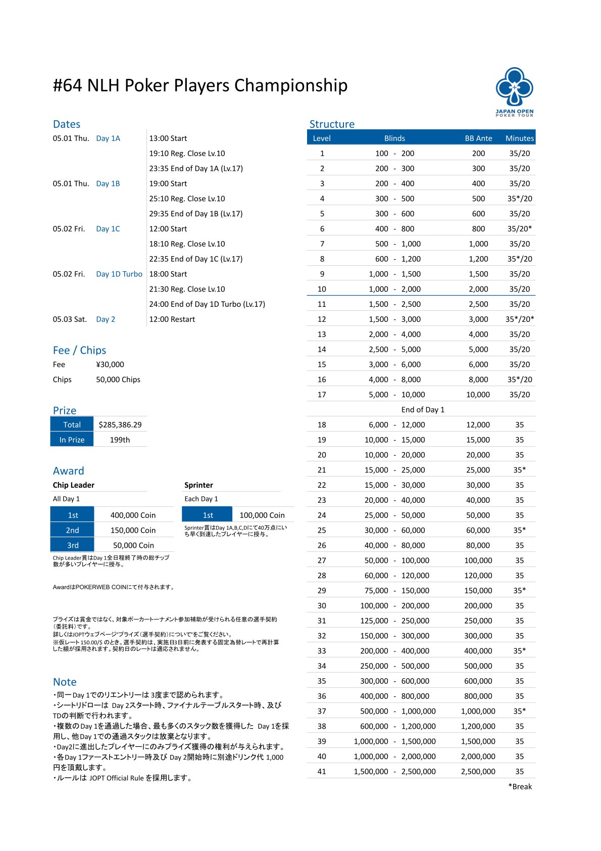 | 店舗名 | JAPAN OPEN POKER TOUR |