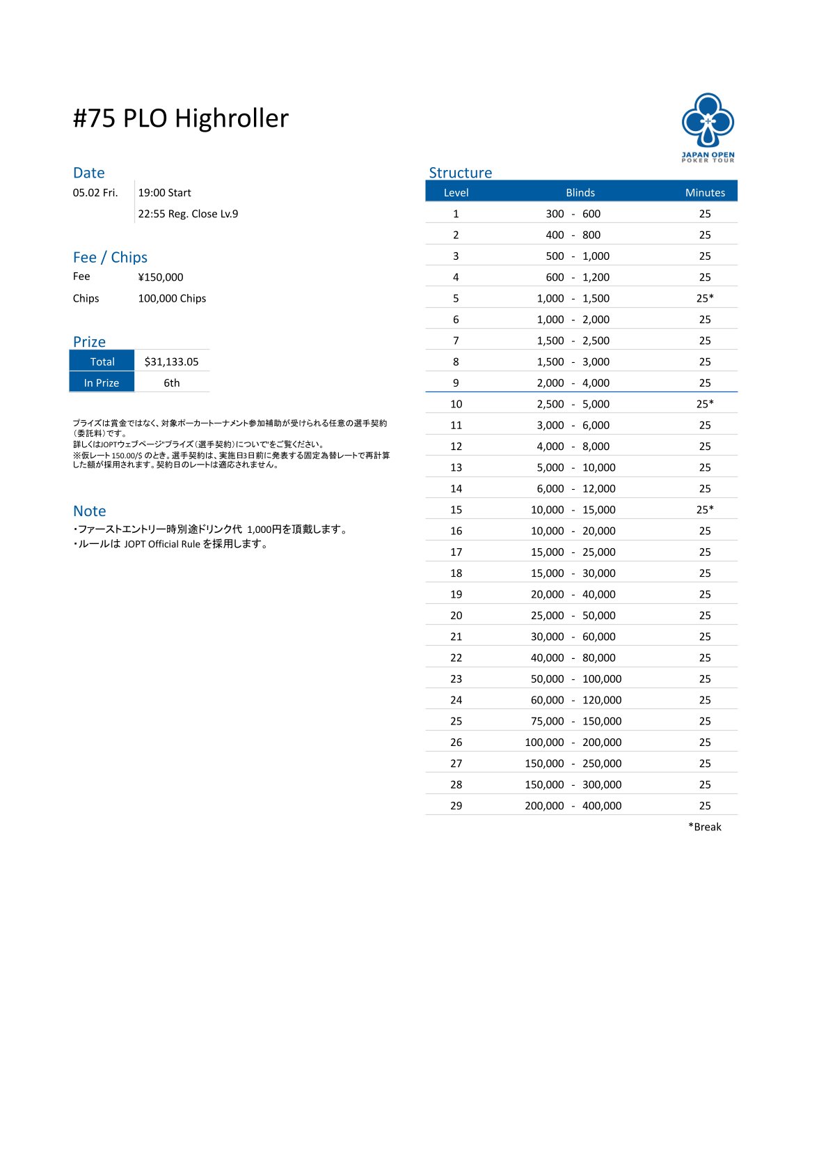 | 店舗名 | JAPAN OPEN POKER TOUR |