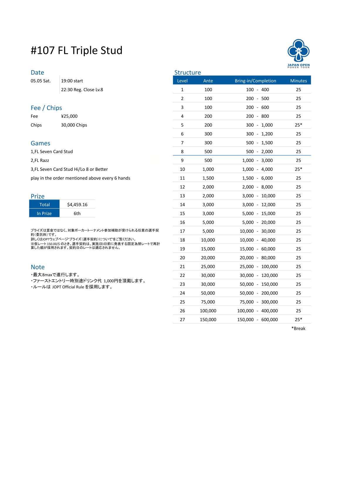 | 店舗名 | JAPAN OPEN POKER TOUR |