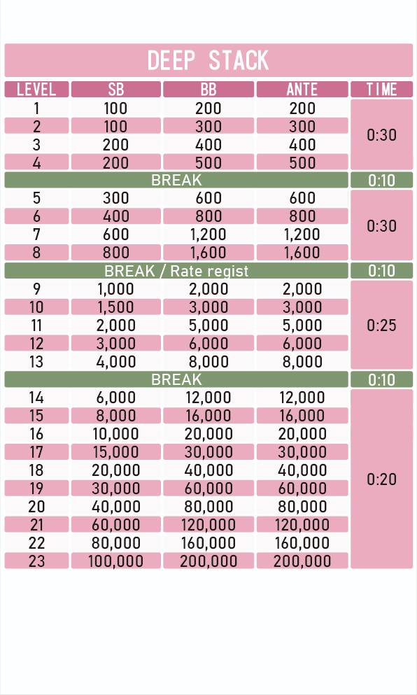 | ゲーム | 30,000点 / ノーリミット / テキサスホールデム / Long / Point |