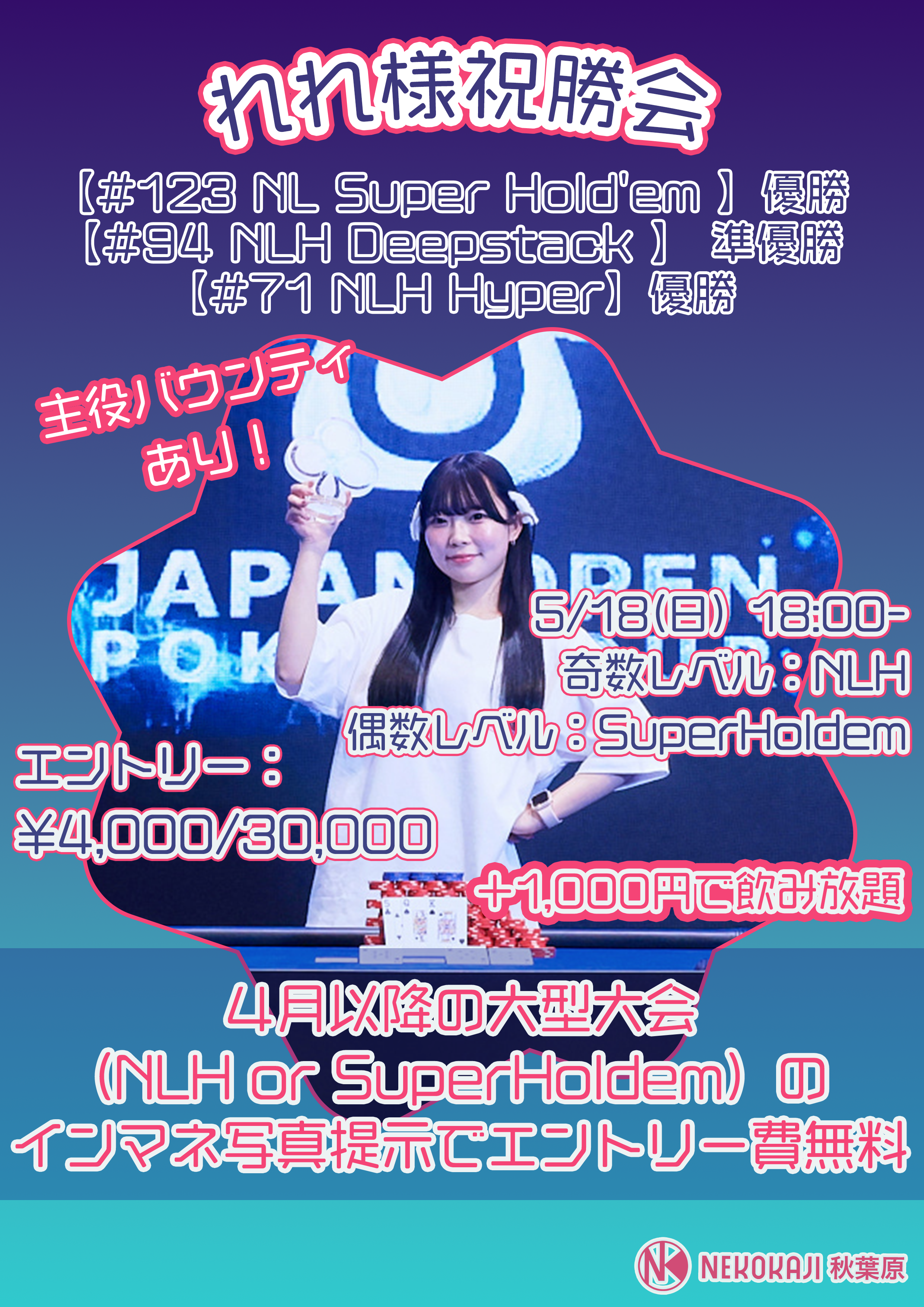 種目:奇数レベル/NLH 偶数レベル/スーパーホールデム
