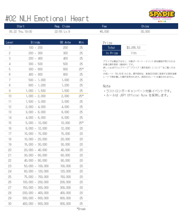 | 店舗名 | JAPAN OPEN POKER TOUR |