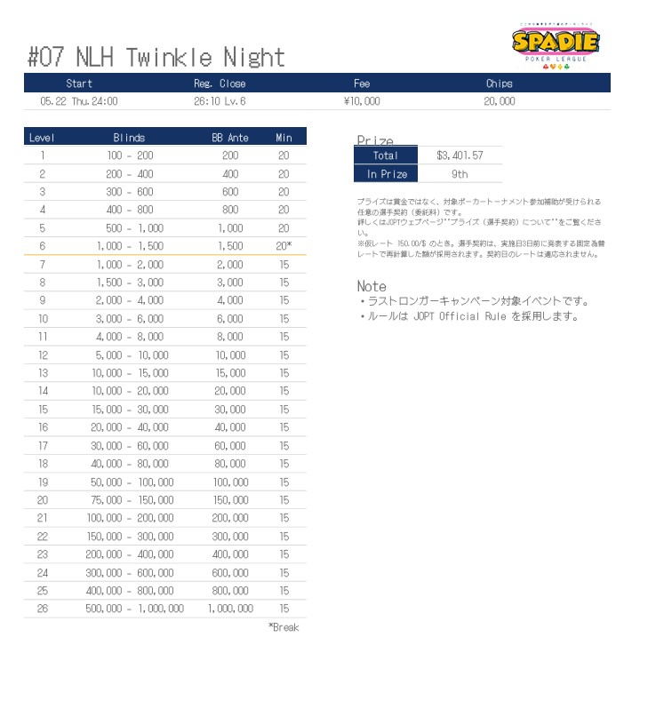 | 店舗名 | JAPAN OPEN POKER TOUR |