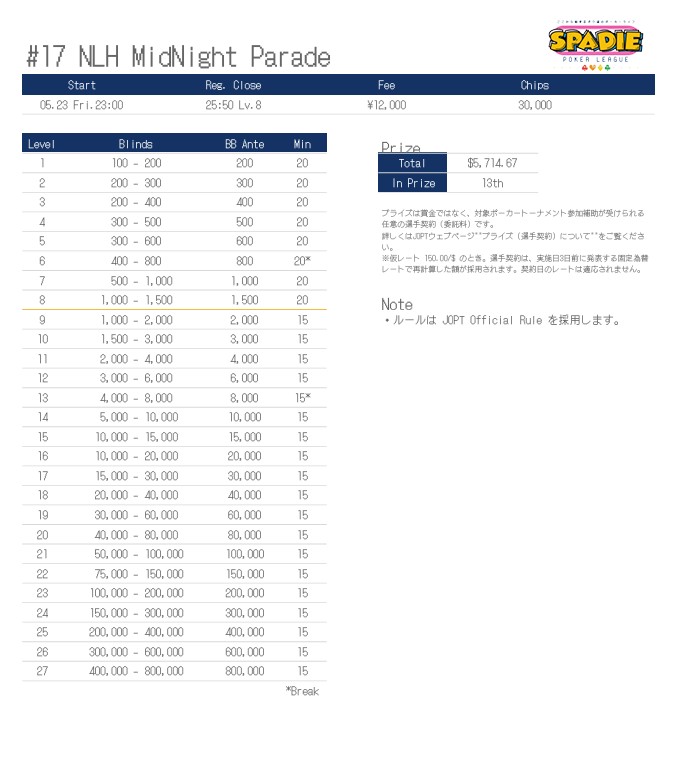 | 12/16(火) | 15:30 | 【♠︎SPADIE】Daily NLH 2K | 秋葉原カジノクエスト |