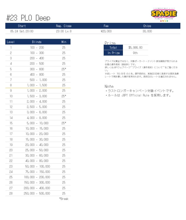 | 店舗名 | JAPAN OPEN POKER TOUR |