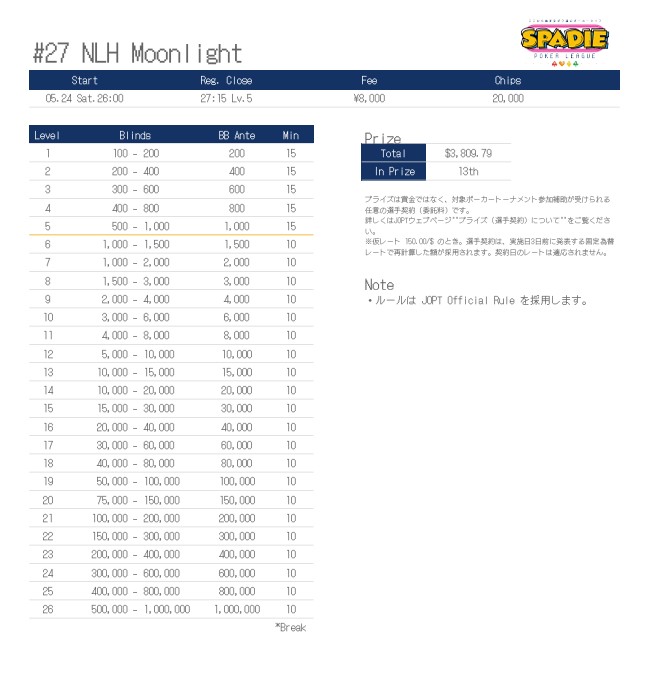 | 店舗名 | JAPAN OPEN POKER TOUR |