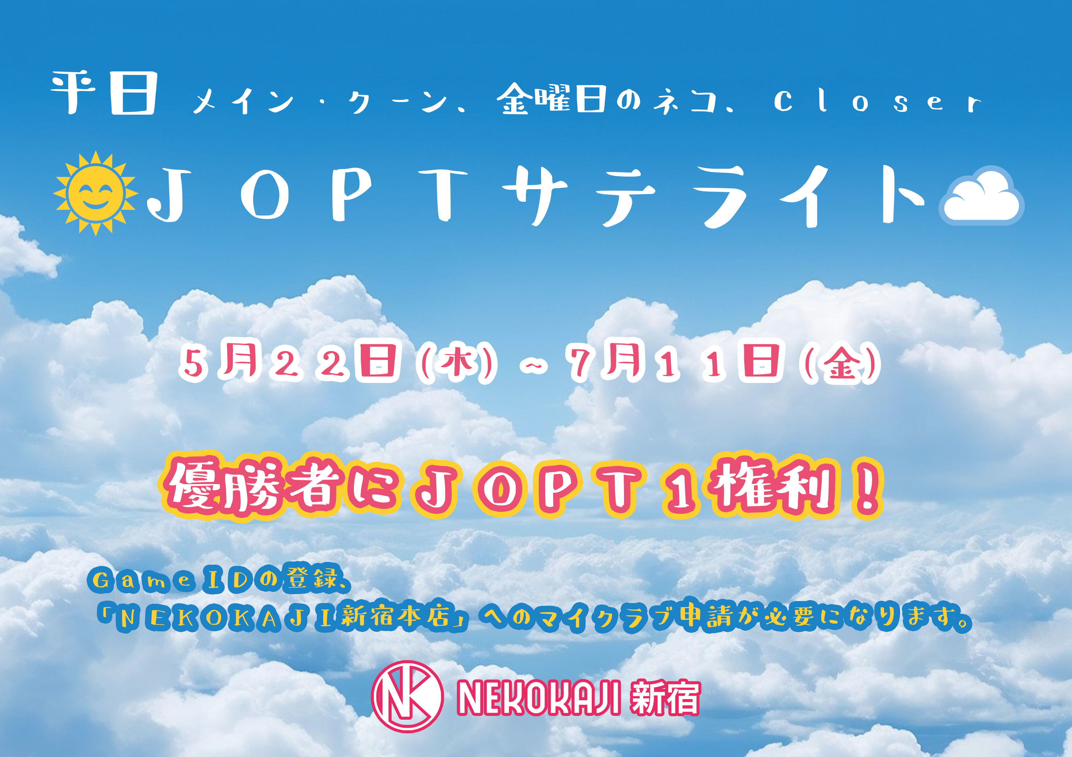 | 12/15(月) | 16:00 | 【JOPT】1000円で参加できる1卓限定 サテライト | EGP EBISU |