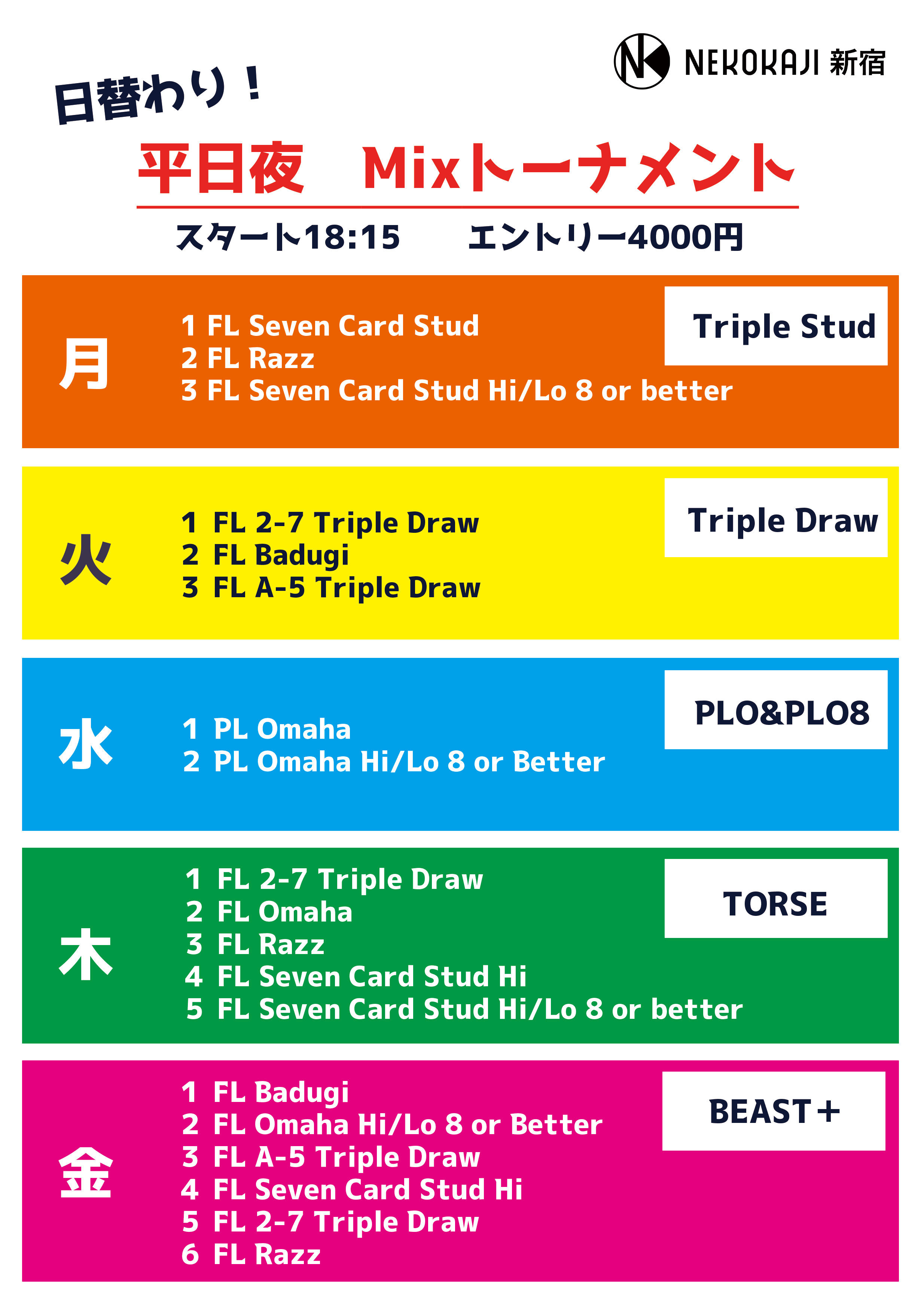 | 12/16(火) | 15:30 | 【♠︎SPADIE】Daily NLH 2K | 秋葉原カジノクエスト |