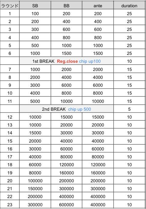 ※TD権限によりタイマースタート、ブラインド、ストラクチャーの変更となる場合がございます。