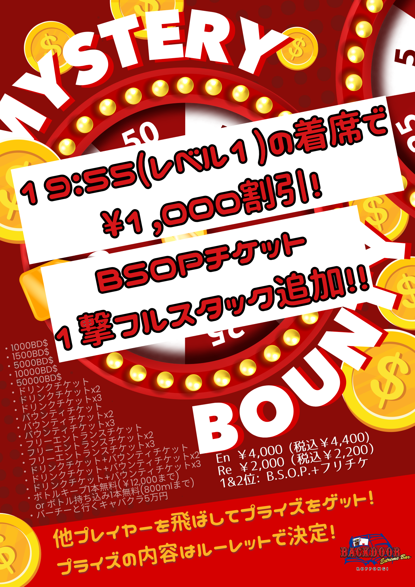 | 公式ページ | https://roppongi.backdoor.casino/mystery_bounty_2.0 |