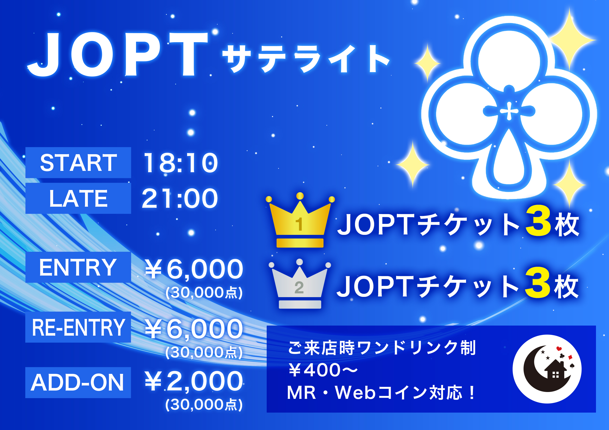 My room新横浜のJOPTサテライトはなんと2位まで3枚出ます!