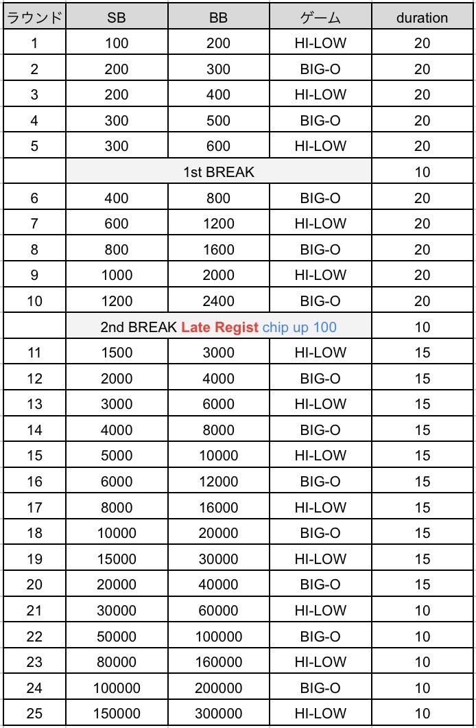 ※TD権限によりタイマースタート、ブラインド、ストラクチャーの変更となる場合がございます。