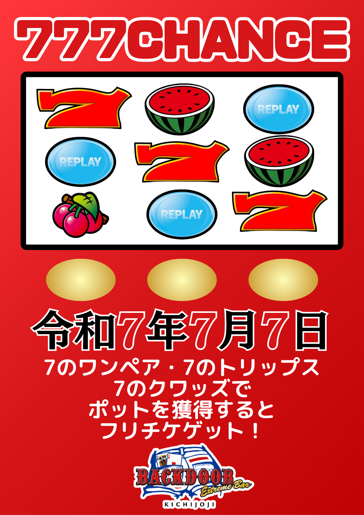 | 公式ページ | https://kichijoji.backdoor.casino/777chance |