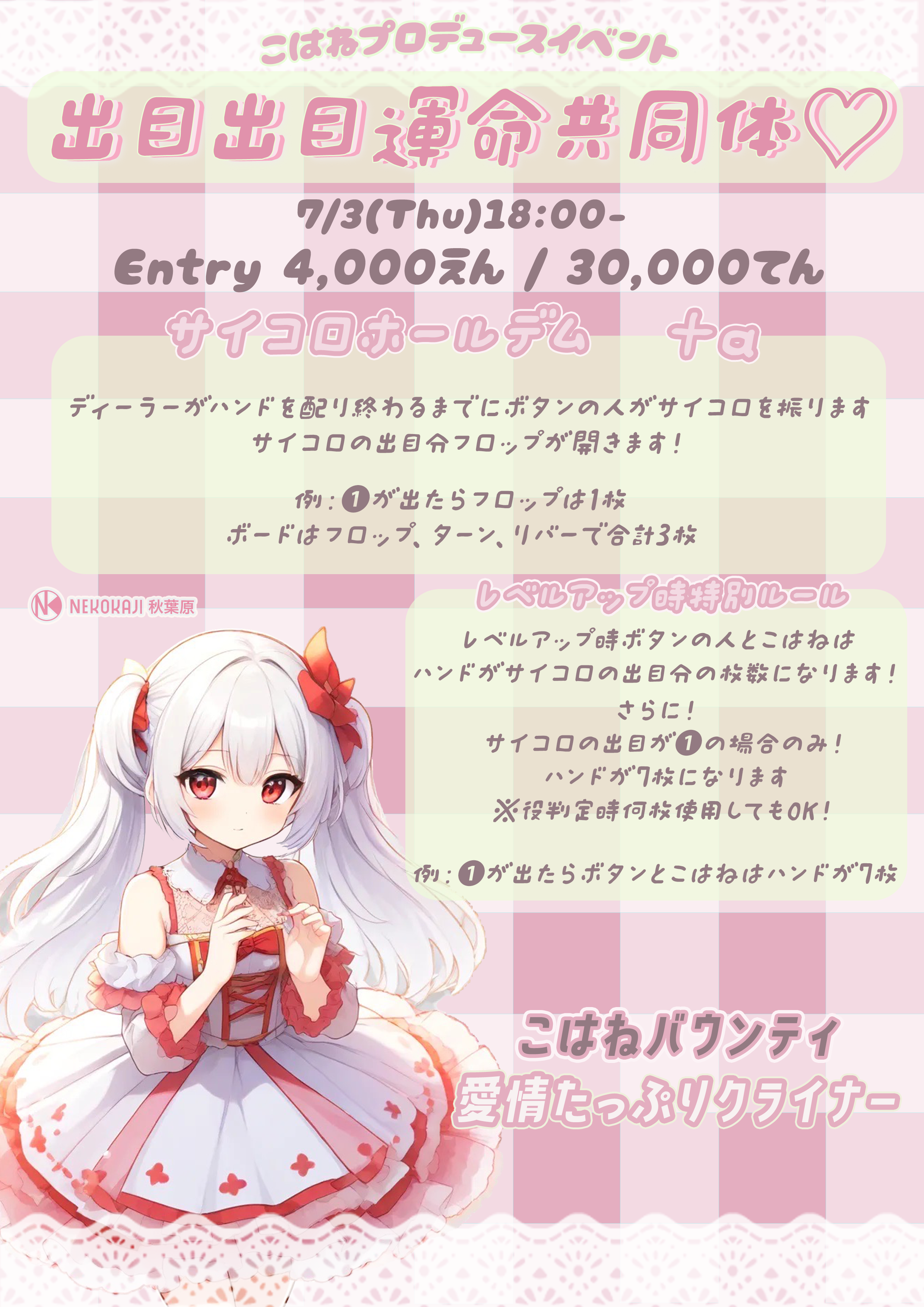 | ゲーム | 30,000点 / ノーリミット / テキサスホールデム / 20Min. / ポイントなし |