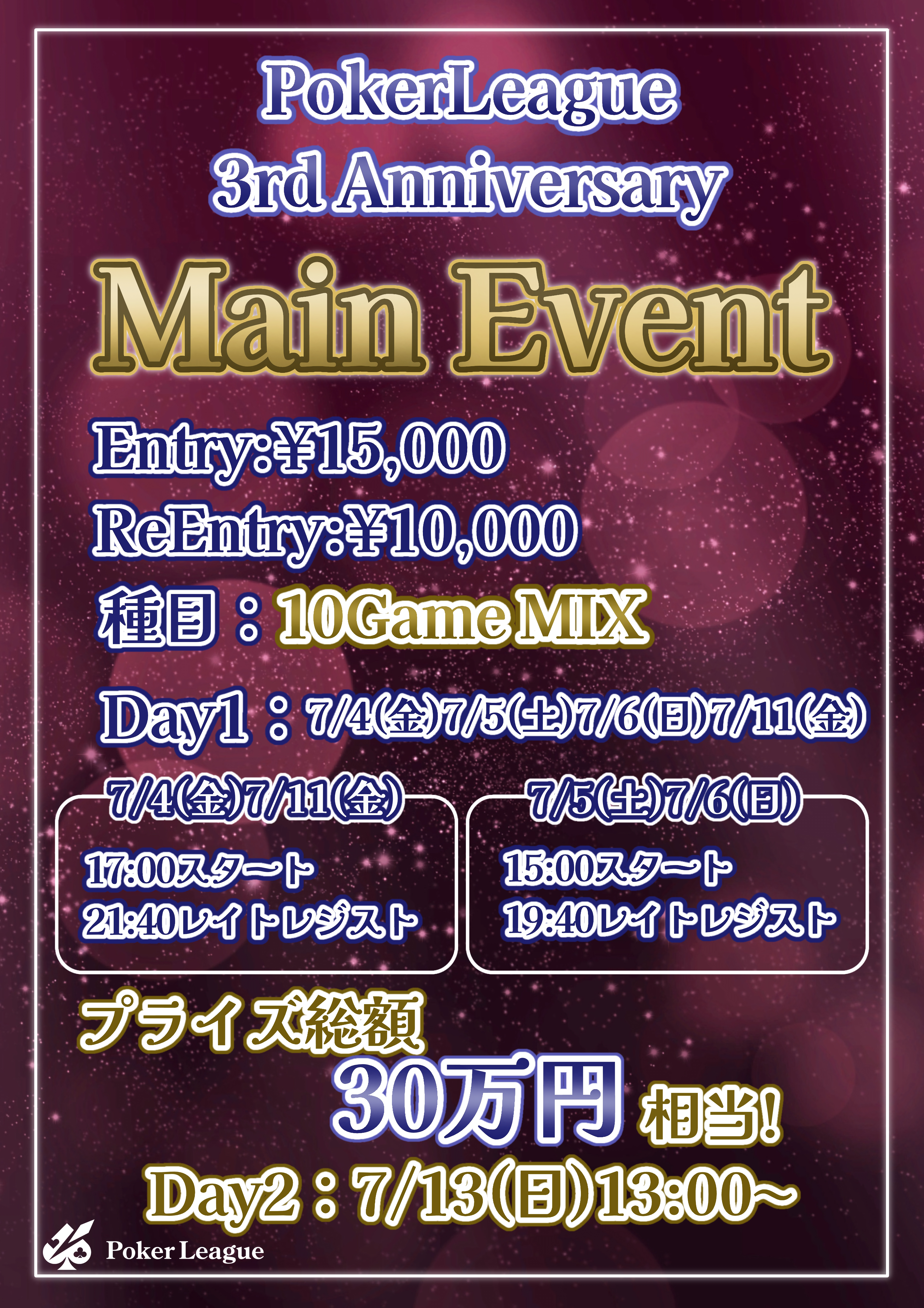 PokerLeague 3rd Anniversary 【10Game MIX Day1A】