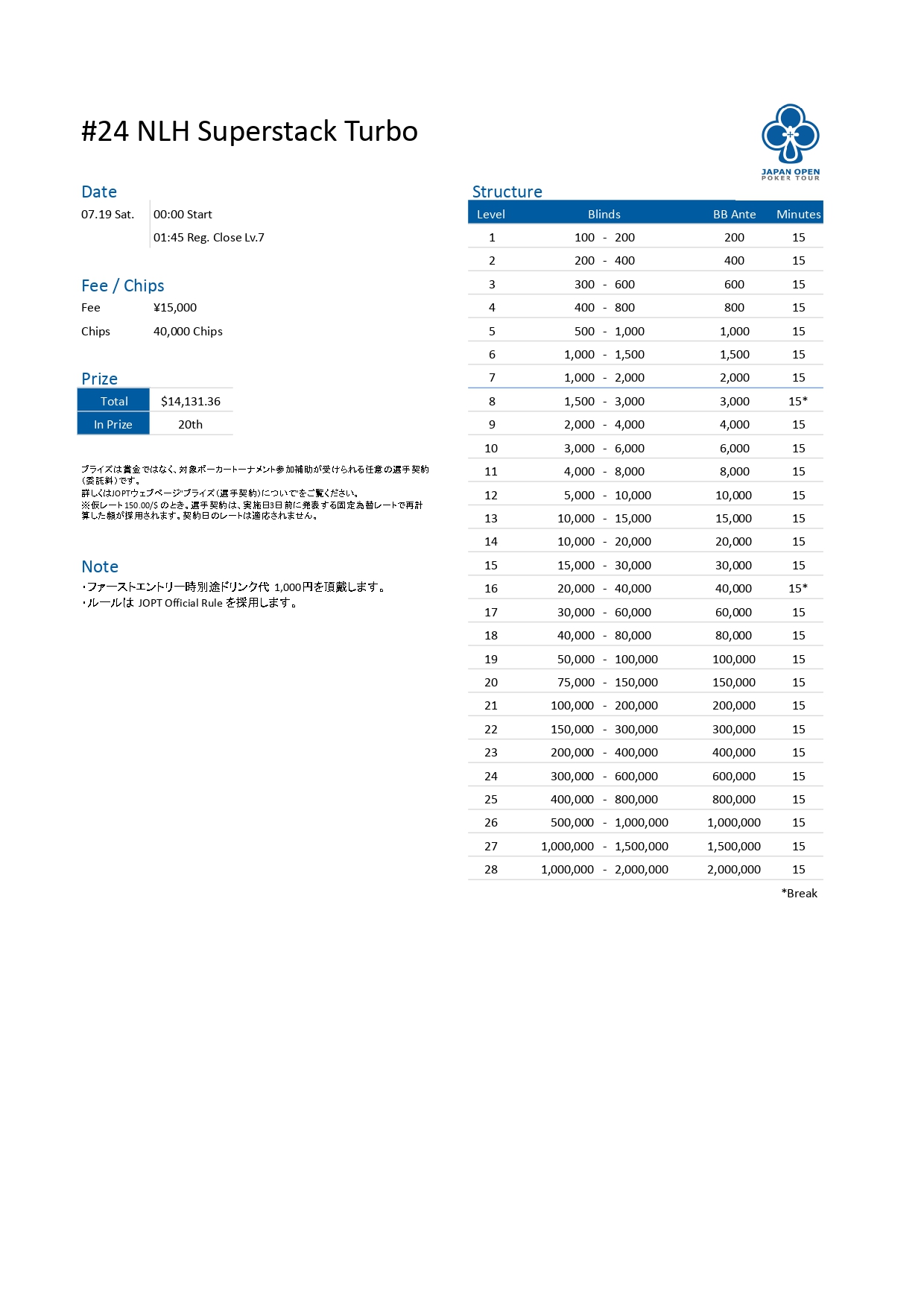 | 店舗名 | JAPAN OPEN POKER TOUR |