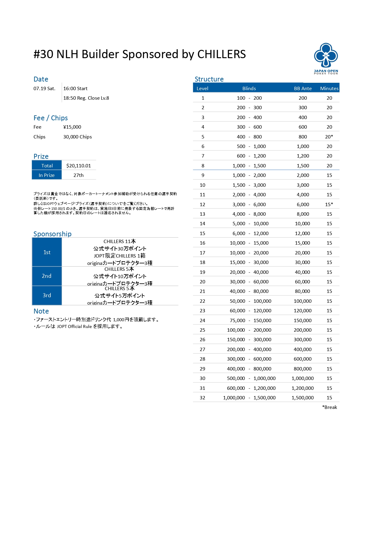 | 店舗名 | JAPAN OPEN POKER TOUR |