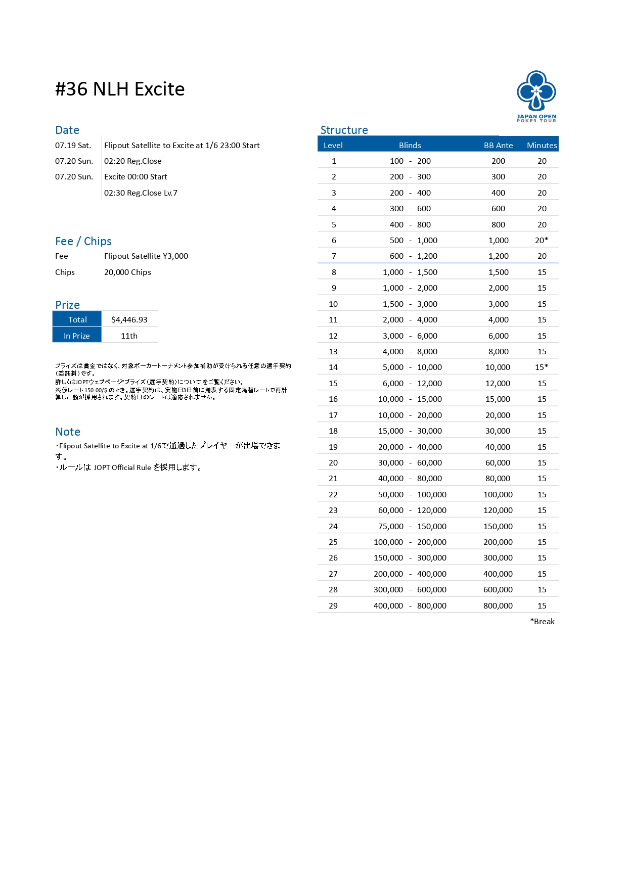 | 店舗名 | JAPAN OPEN POKER TOUR |