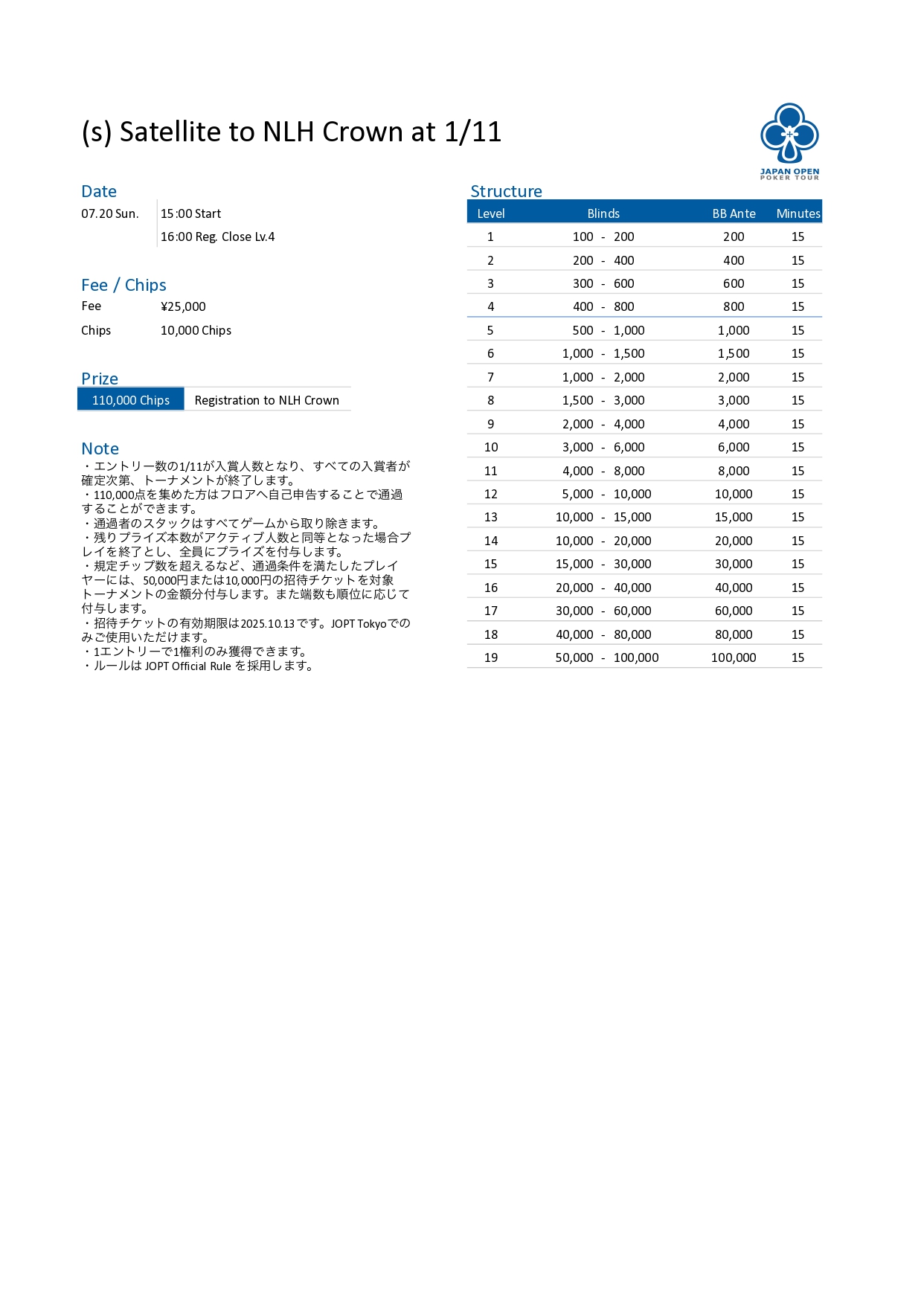 | 店舗名 | JAPAN OPEN POKER TOUR |