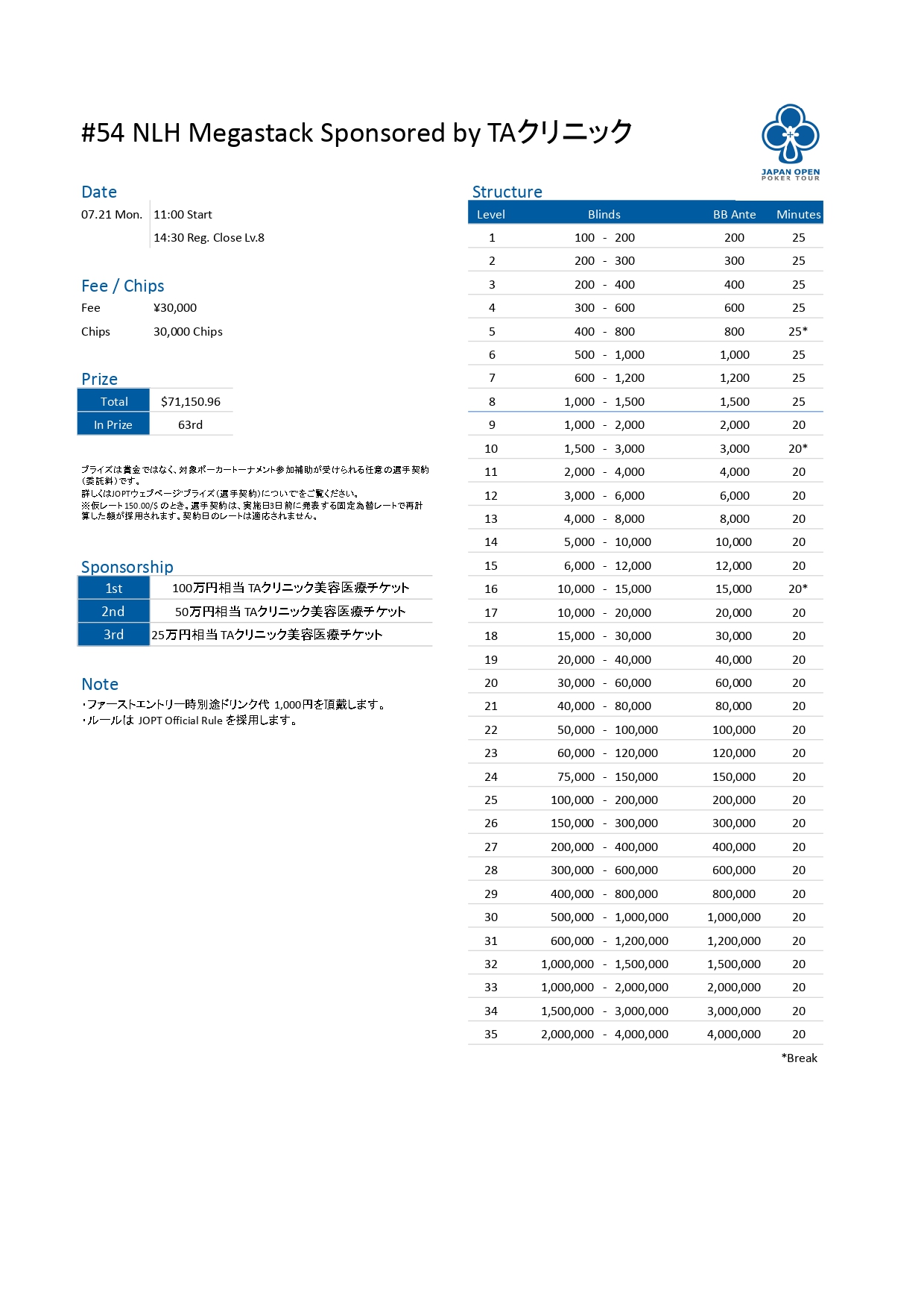 | 店舗名 | JAPAN OPEN POKER TOUR |