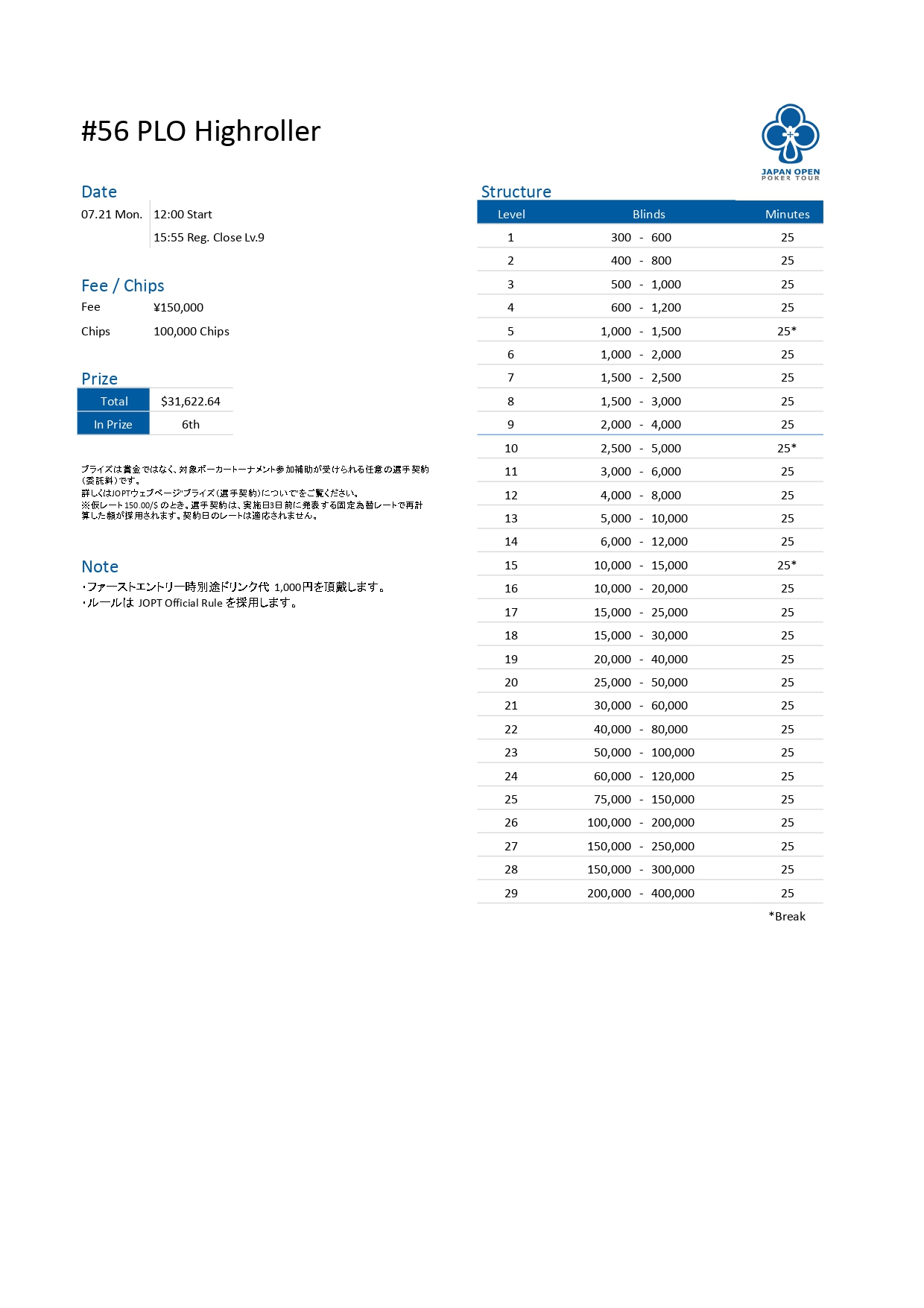 | 店舗名 | JAPAN OPEN POKER TOUR |