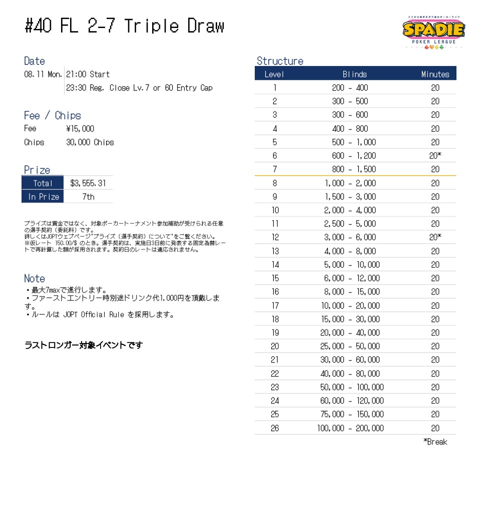 | 12/15(月) | 16:00 | 【JOPT】1000円で参加できる1卓限定 サテライト | EGP EBISU |