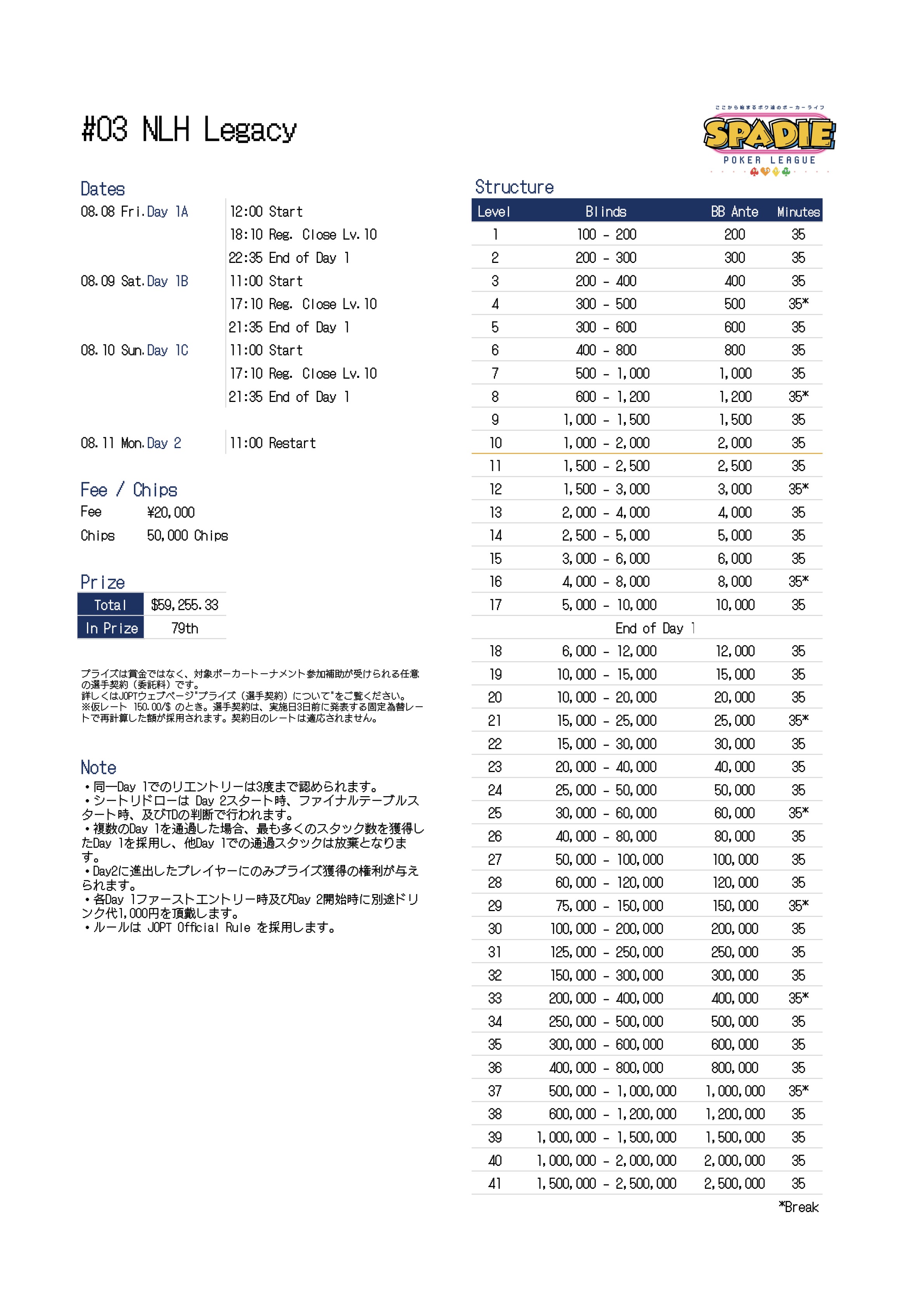 | 店舗名 | JAPAN OPEN POKER TOUR |