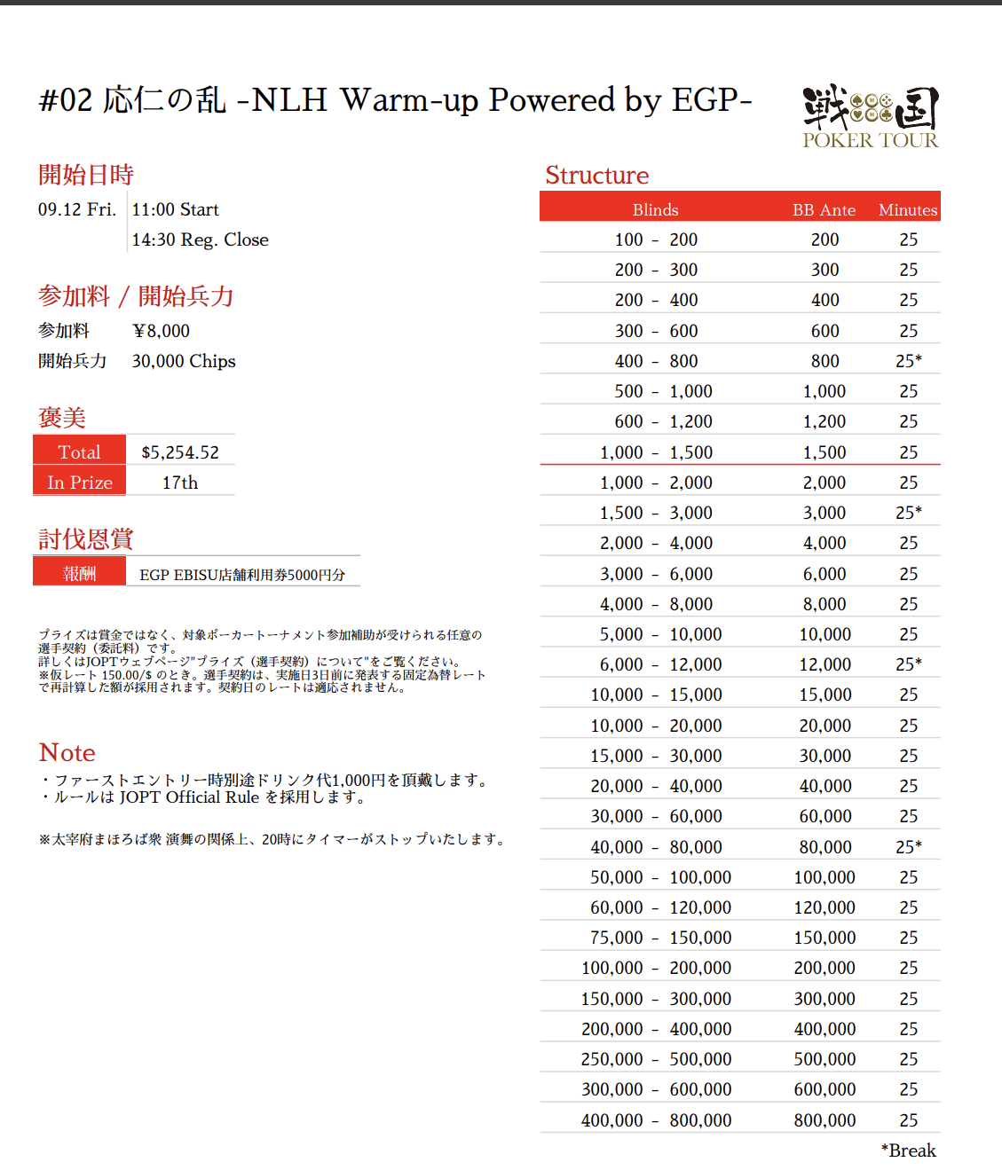 ※TDの裁量でストラクチャーが変更になる場合があります