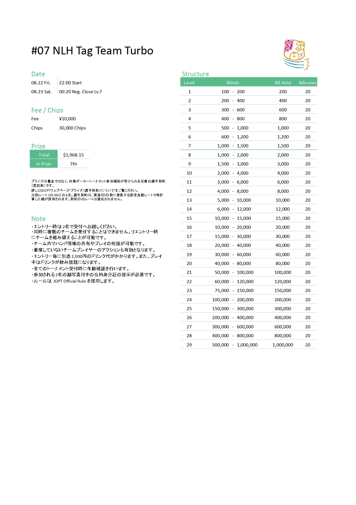 3. Main Event参加プレイヤーとサイドイベントの上位プレイヤーは、氏名を関連するサイト等で公開することに同意する。