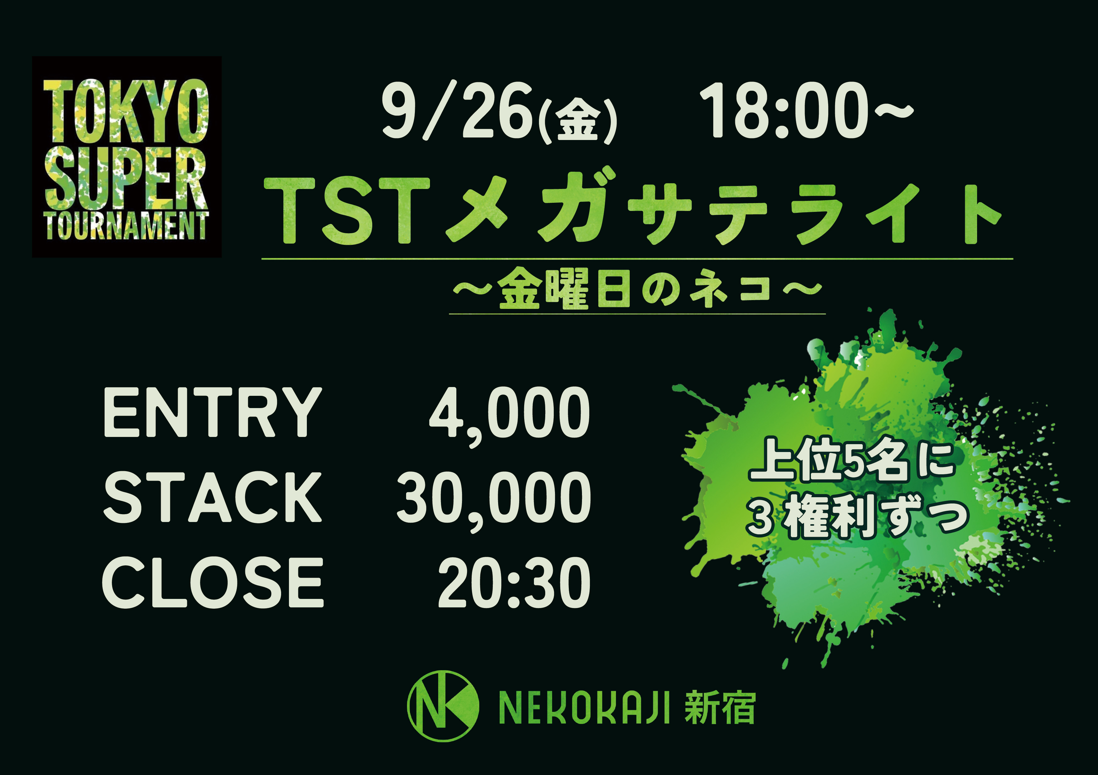 【TSTメガサテライト】金曜日のネコ【上位5名に総額1,500万プライズのメイン参加チケット3枚】