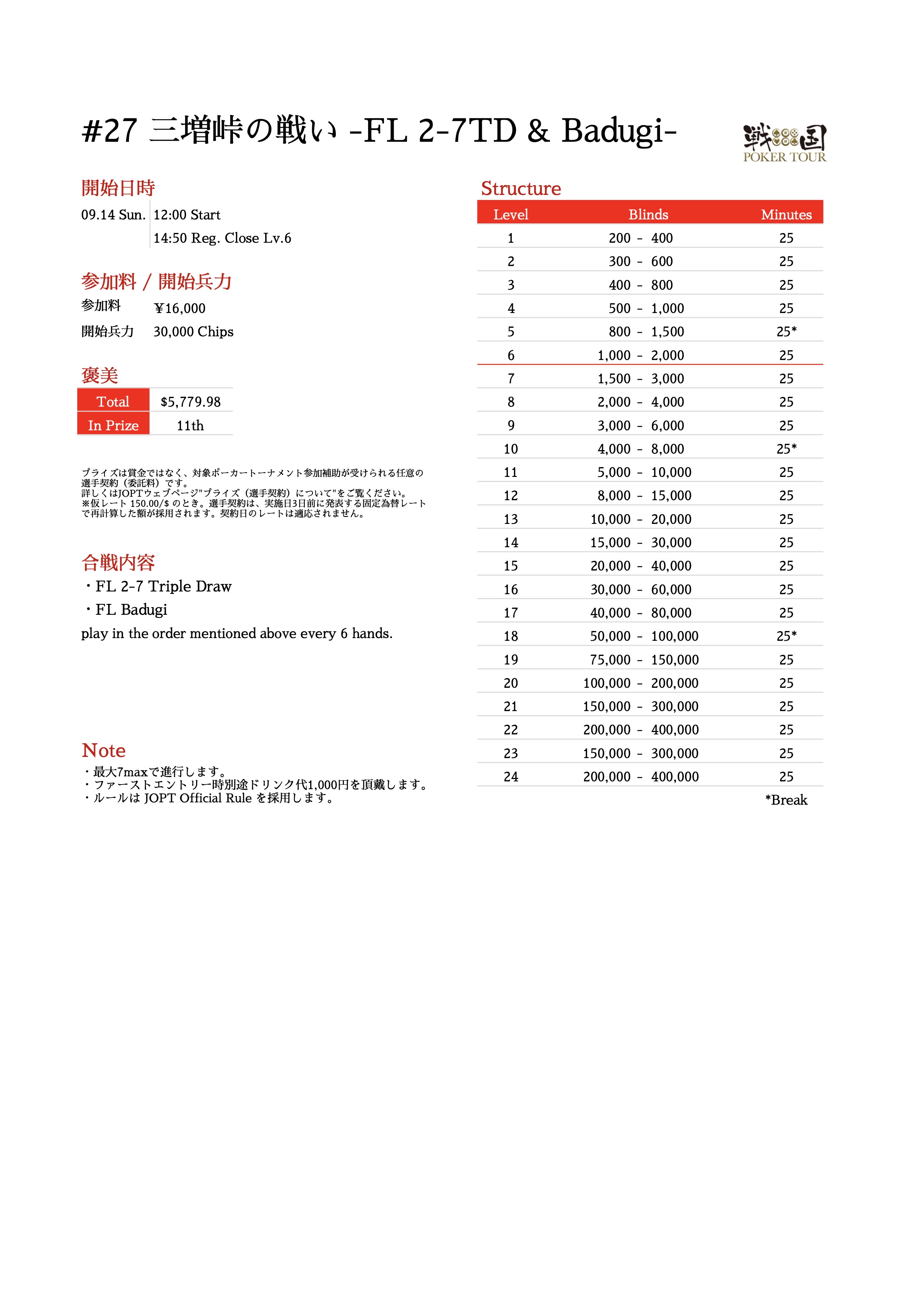 3. Main Event参加プレイヤーとサイドイベントの上位プレイヤーは、氏名を関連するサイト等で公開することに同意する。