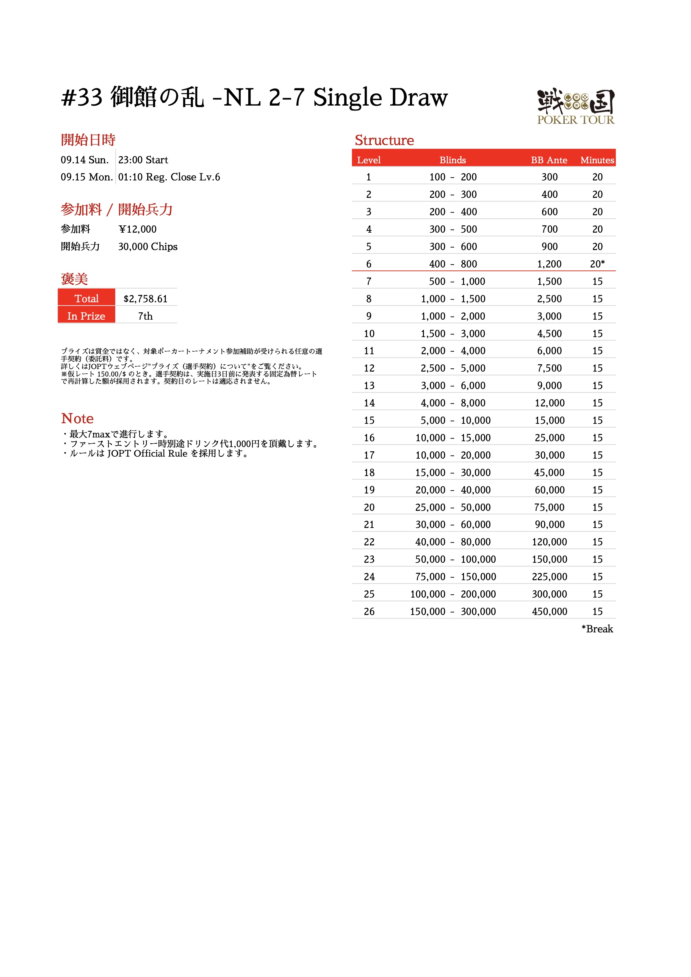 | 店舗名 | JAPAN OPEN POKER TOUR |