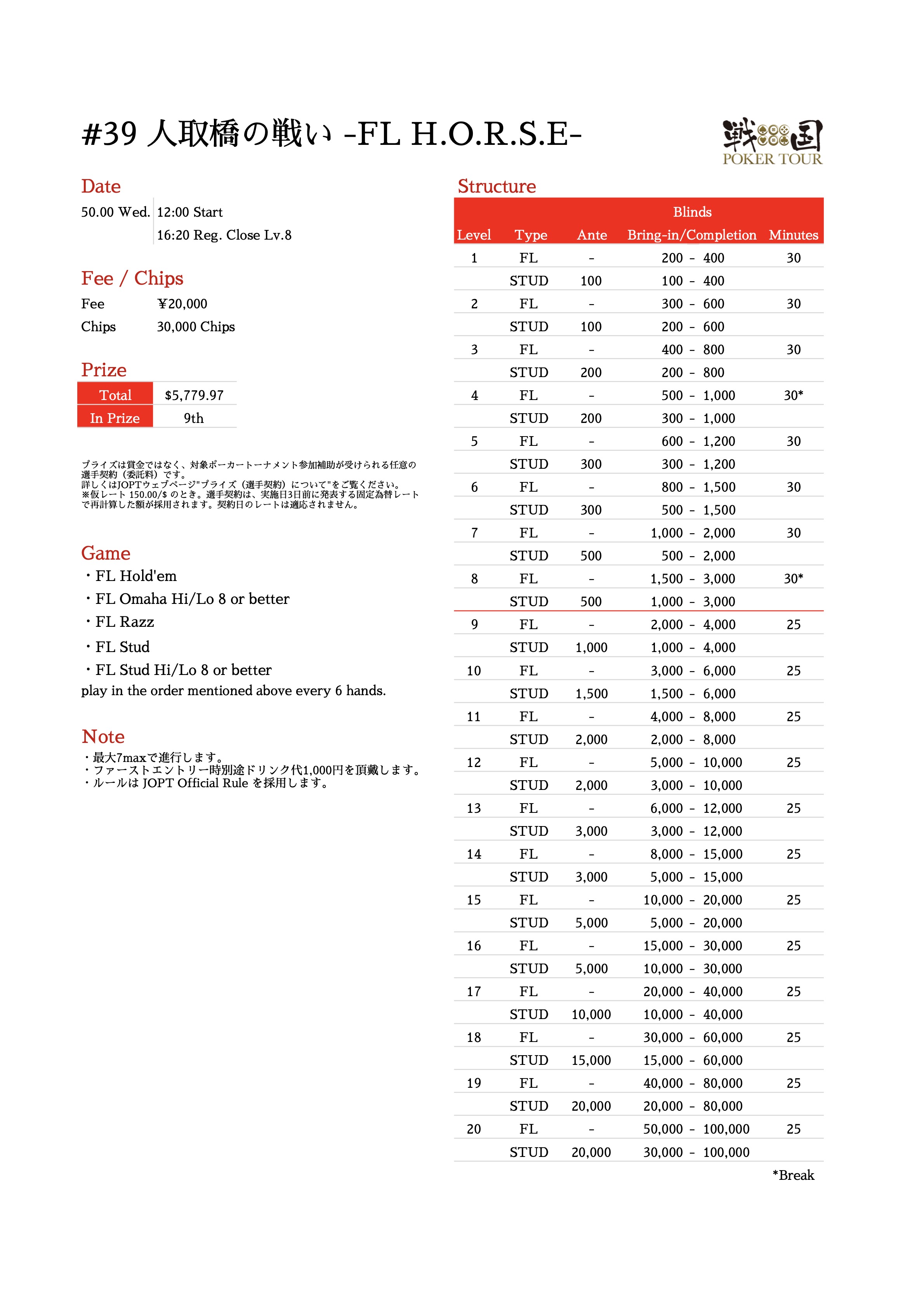 | 店舗名 | JAPAN OPEN POKER TOUR |