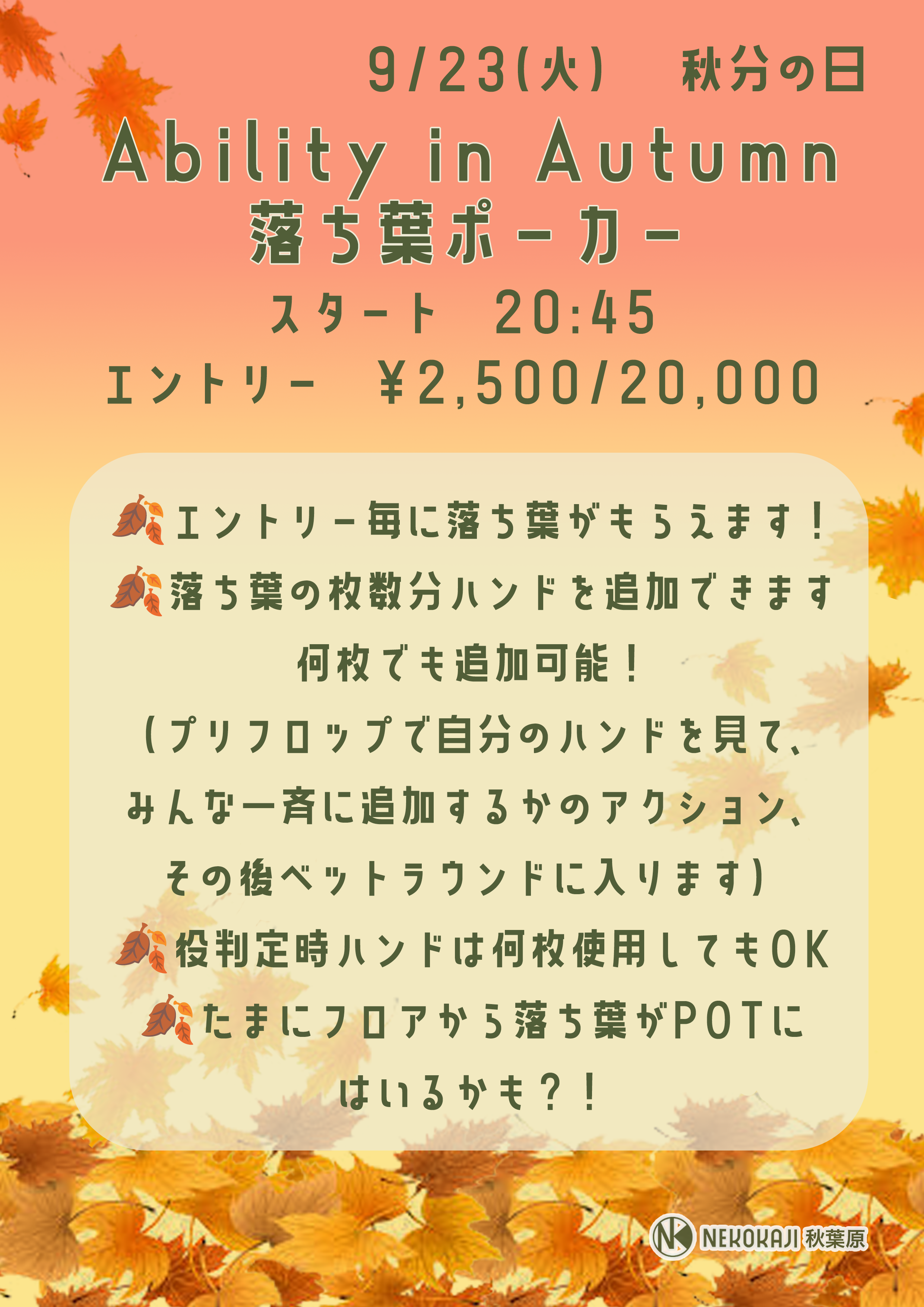 | 12/16(火) | 15:30 | 【♠︎SPADIE】Daily NLH 2K | 秋葉原カジノクエスト |
