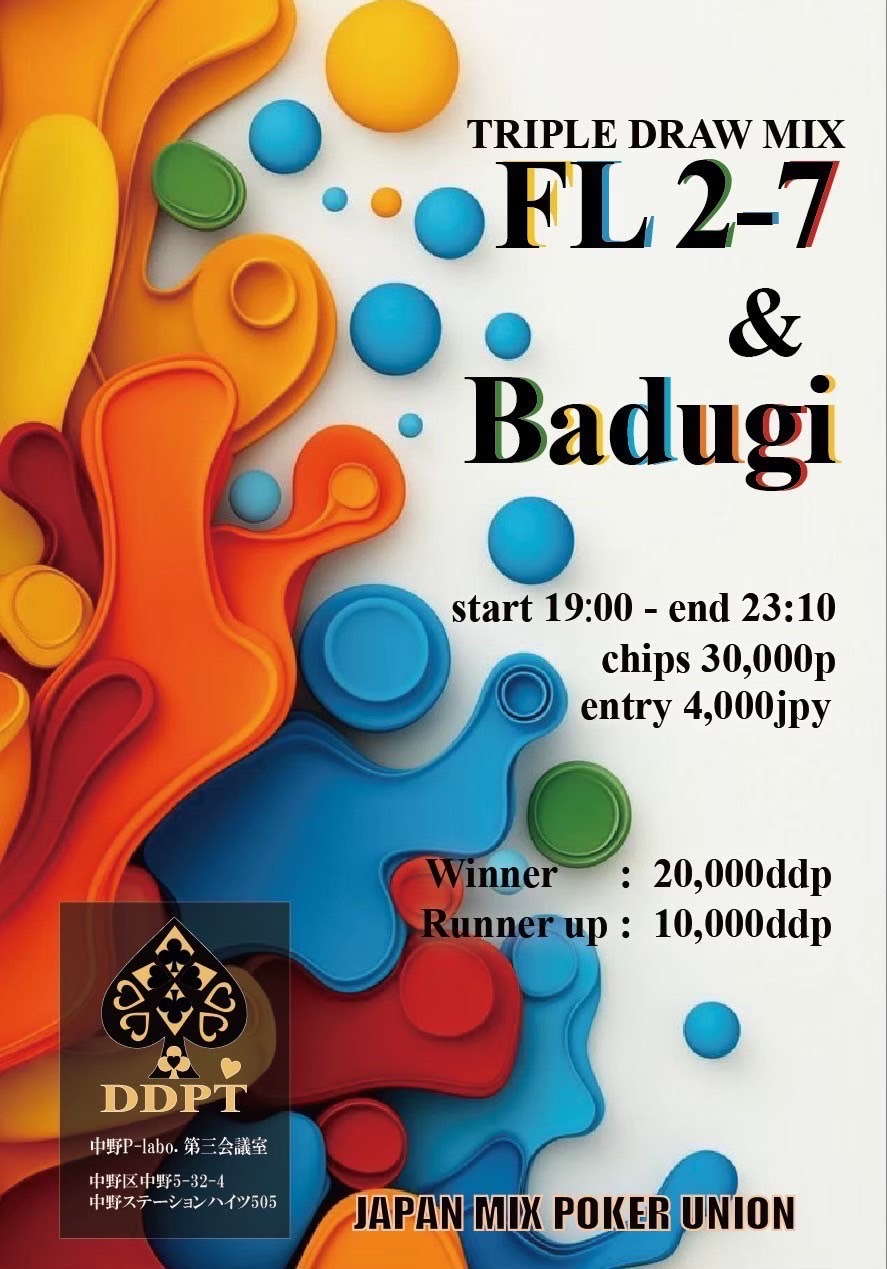 ❤️FL 2-7 TD & FL Badugi プライズ総額30,000 MIX❤️