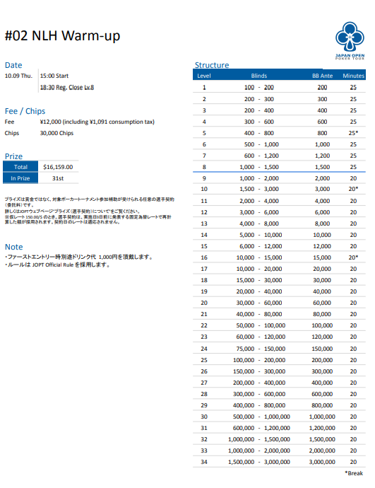 | 店舗名 | JAPAN OPEN POKER TOUR |