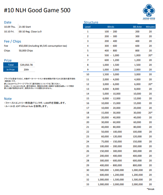 | 店舗名 | JAPAN OPEN POKER TOUR |