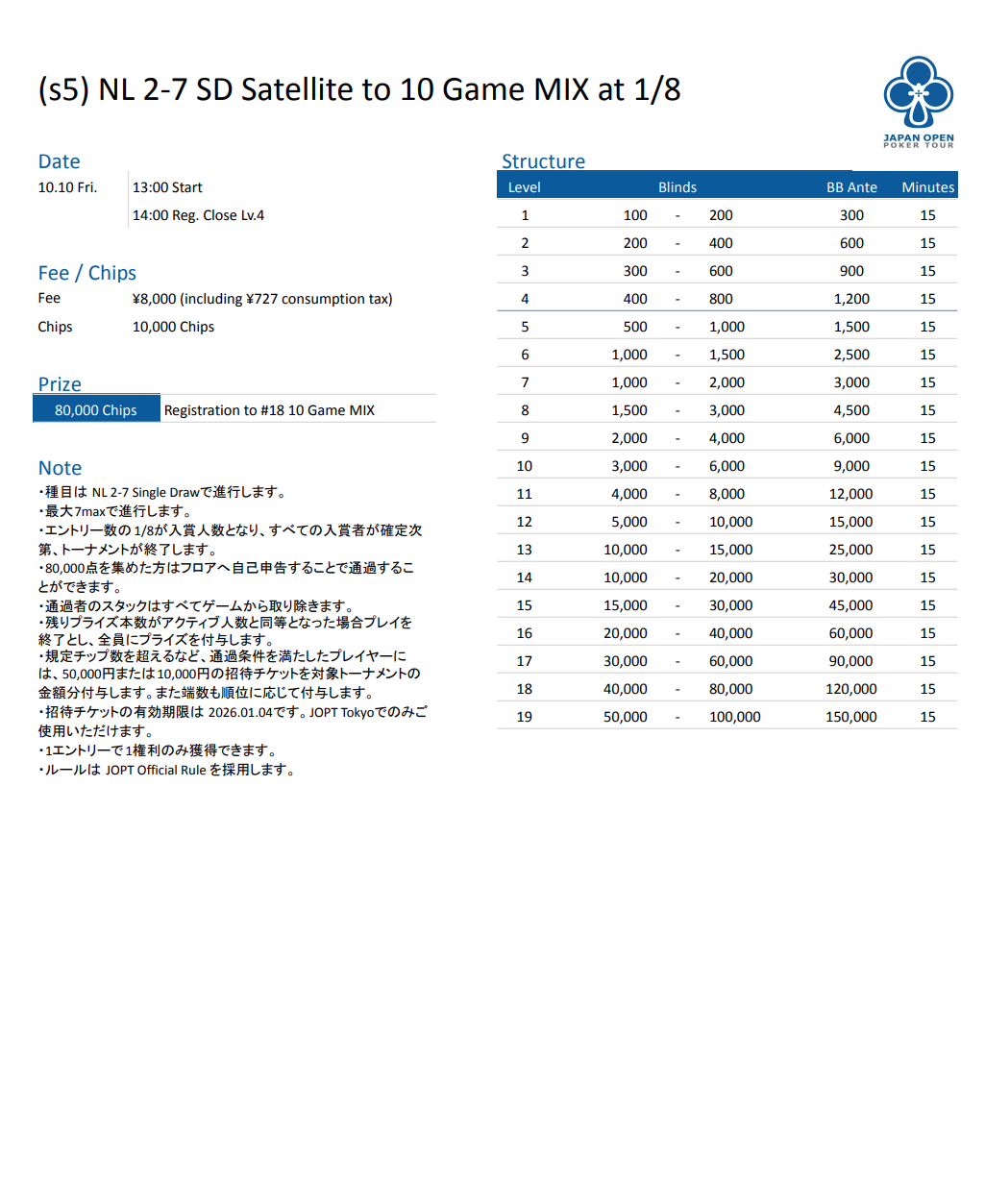 | 店舗名 | JAPAN OPEN POKER TOUR |