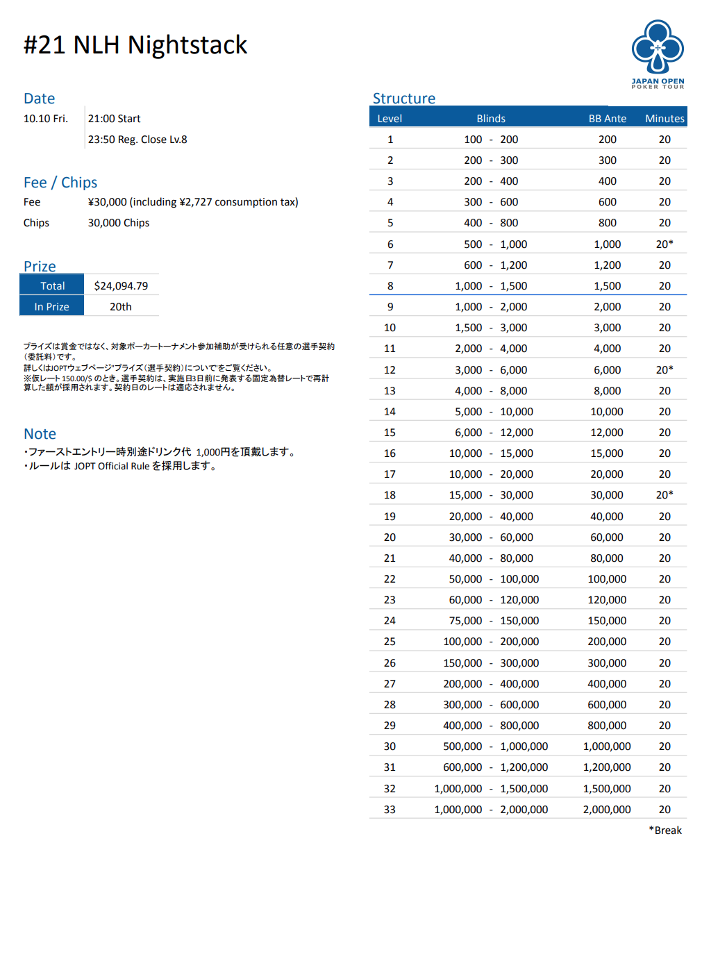| 店舗名 | JAPAN OPEN POKER TOUR |