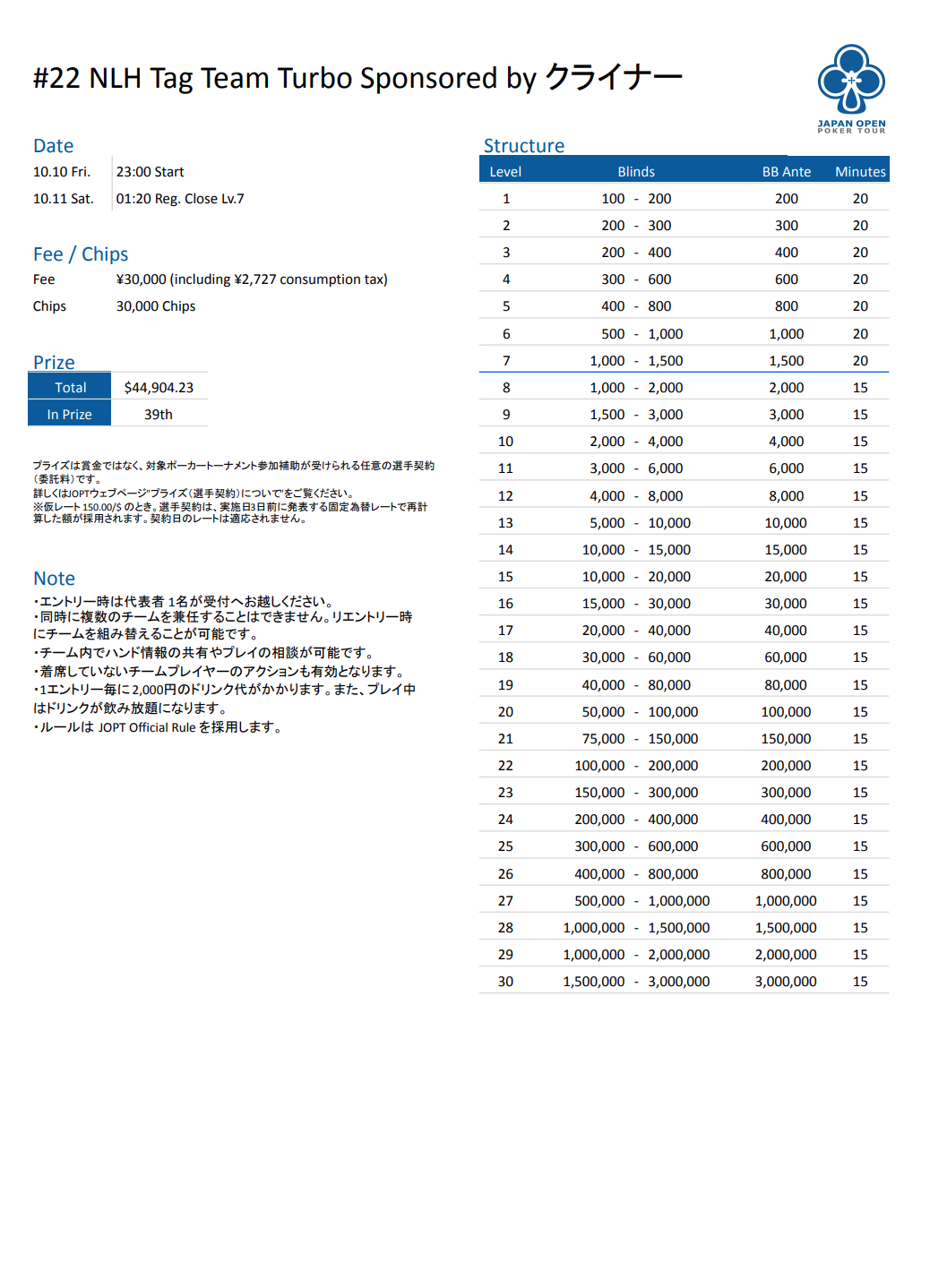 | 店舗名 | JAPAN OPEN POKER TOUR |