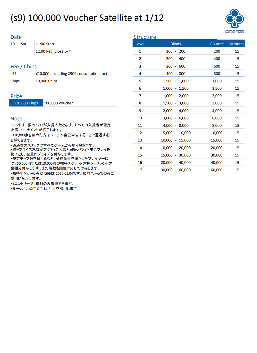 | 店舗名 | JAPAN OPEN POKER TOUR |