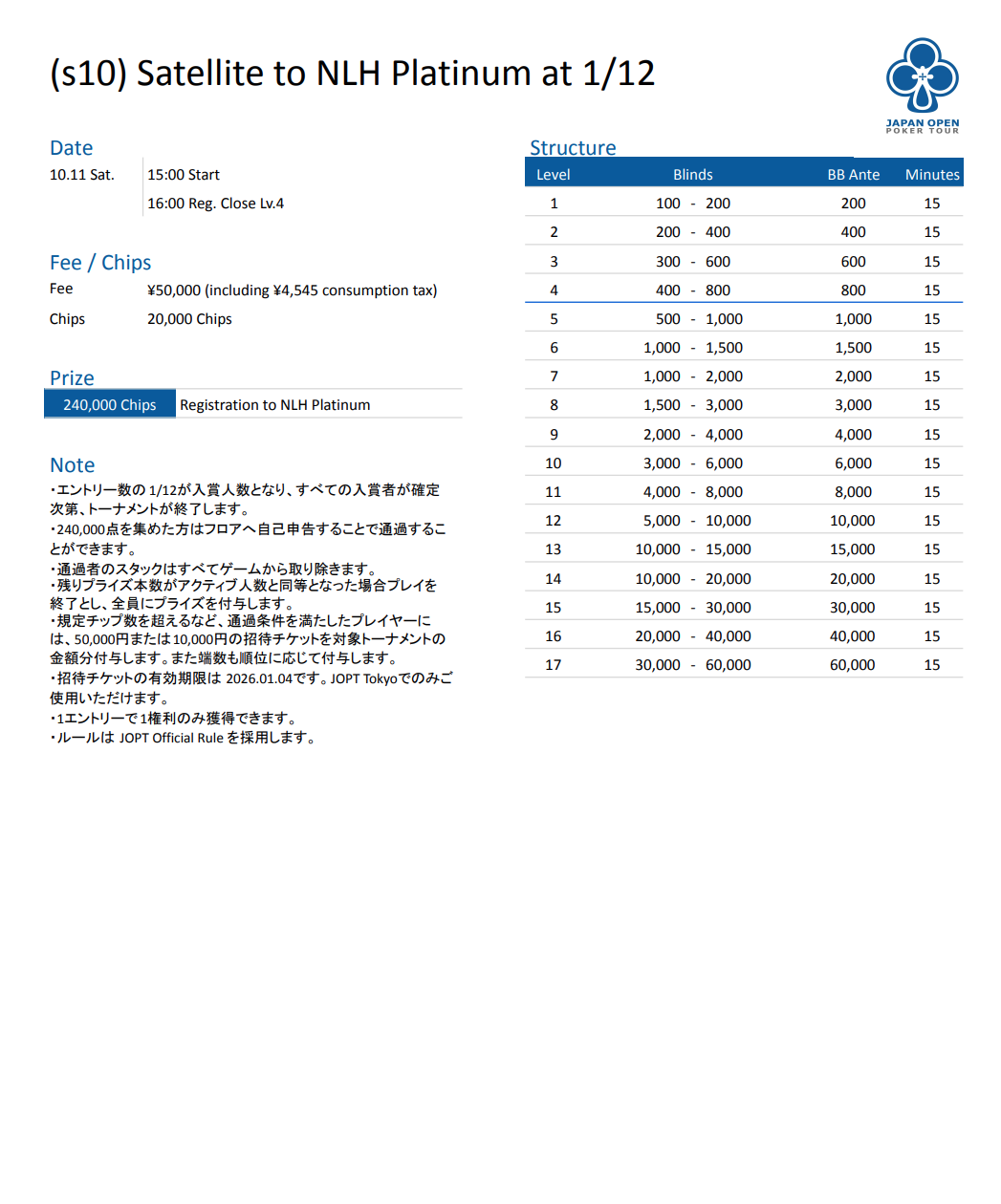 | 店舗名 | JAPAN OPEN POKER TOUR |
