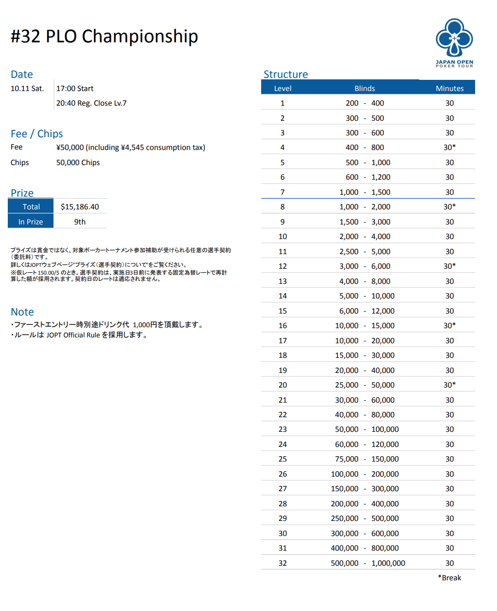 | 店舗名 | JAPAN OPEN POKER TOUR |