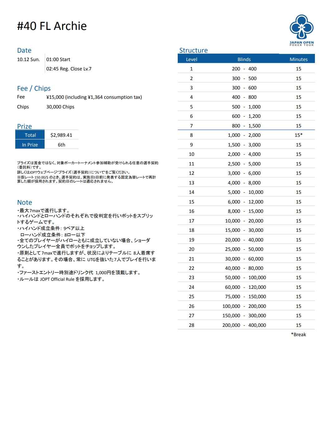 | 店舗名 | JAPAN OPEN POKER TOUR |