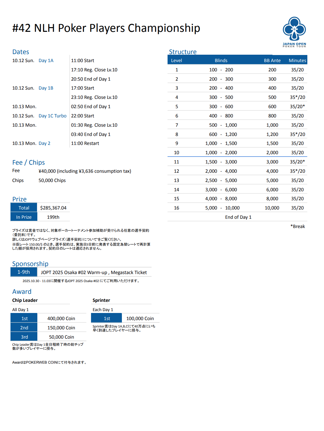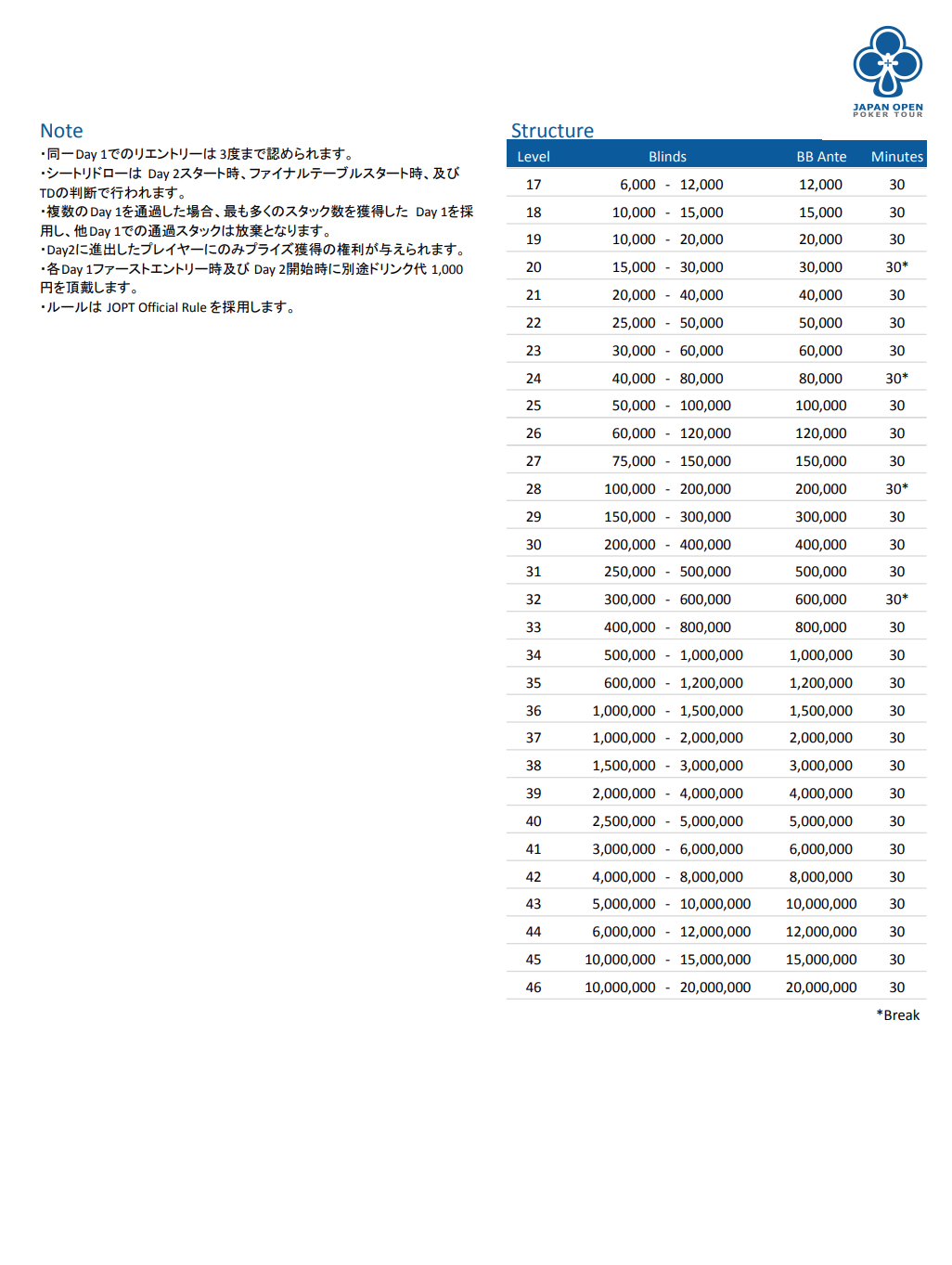 | 店舗名 | JAPAN OPEN POKER TOUR |